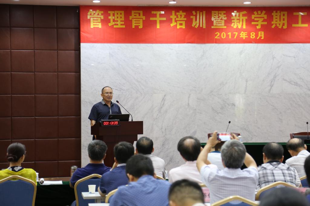 8月26-29日,學校以“激發(fā)團隊活力 提升創(chuàng)強合力”為題召開管理骨干培訓暨新學期工作研討會。會議分為大會報告、經(jīng)驗介紹、分組討論和總結(jié)交流等四個環(huán)節(jié)。執(zhí)行董事、校管會主任張亞斌,校長劉國生等校領導出席會議。公司領導,全體管理干部,教研室正、副主任共160余人參加了會議。