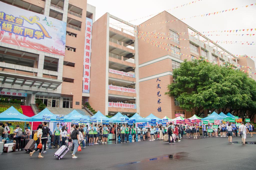 從正門進(jìn)來,醒目、清晰的指路牌從門口一直延伸到生活區(qū),各類標(biāo)志和標(biāo)示詳細(xì)指引道路;人文藝術(shù)樓前廣場各學(xué)院帳篷依次排開,為新生提供指引、解答等全方位服務(wù);注冊點(diǎn)前,參與注冊的人員精神飽滿地投身工作中;校道上,志愿者們一邊幫忙拿著行李,一邊熱情地與新生和家長交流,介紹學(xué)校里宿舍、食堂、超市等校園生活環(huán)境和配套設(shè)施;學(xué)生記者團(tuán)的小記者們身穿黑色馬甲穿梭在校園各個(gè)迎新工作地點(diǎn),記錄捕捉迎新精彩瞬間,同步發(fā)放迎新最新消息;在廣州汽車站、天河客運(yùn)站等駐點(diǎn)的工作人員高舉“廣州城建職業(yè)學(xué)院”指示牌迎接新生;工作人員提行李、答疑解惑,熱情周到服務(wù)新生……我校迎新工作人員全方位的服務(wù)贏得新生及家長的一致好評(píng)。
