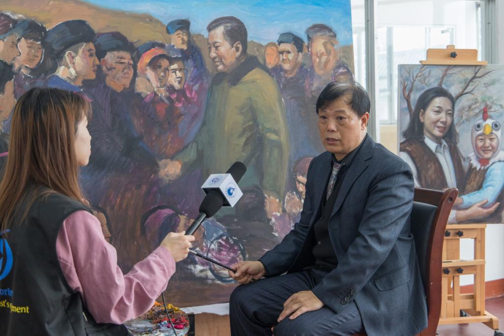 此次當(dāng)我們訪問之時,曹廣豫副教授正在創(chuàng)作新作品《習(xí)近平總書記與人民心連心》,盡管作品尚未完成,但從已經(jīng)逐漸明朗的作品輪廓和主題上來看,曹教授依然喜好并且擅長于以情繪畫,借畫言赤子情。