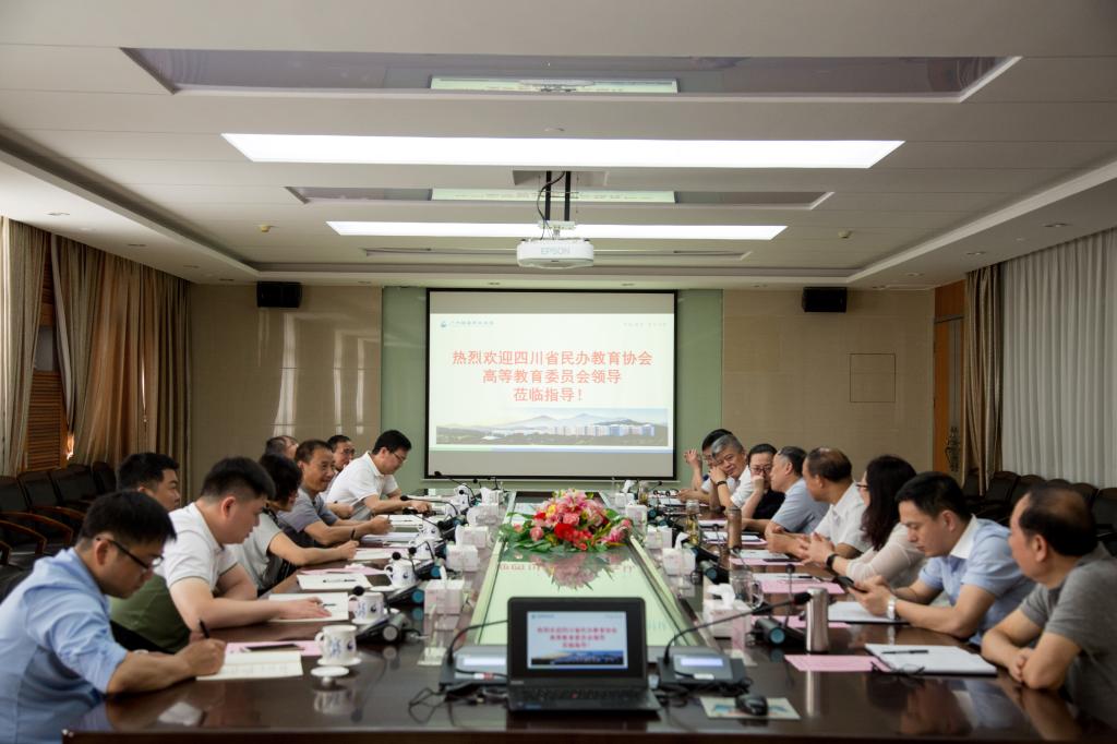 4月24日,四川省民辦教育協(xié)會(huì)高等教育委員會(huì)考察團(tuán)在四川工商學(xué)院校長(zhǎng)夏明忠、四川城市職業(yè)學(xué)院校長(zhǎng)王世倫的帶領(lǐng)下,一行8人來校考察交流。我校校長(zhǎng)蔣新華、校管會(huì)副主任劉國(guó)生、副校長(zhǎng)周暉、王媚莎,校管會(huì)秘書曾慶鴻等領(lǐng)導(dǎo)參加考察交流活動(dòng)。考察交流座談會(huì)由校長(zhǎng)蔣新華主持。