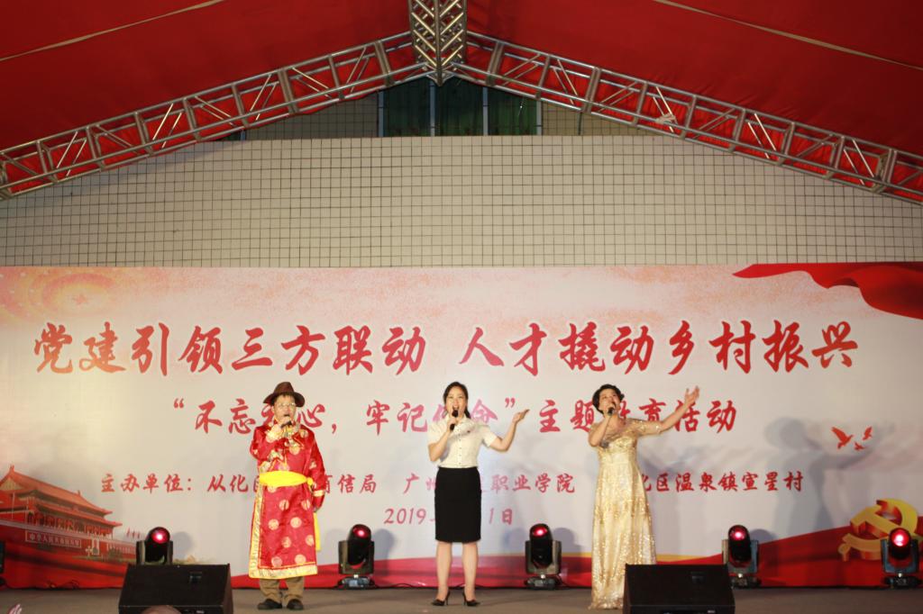 在建黨98周年之際,我校與從化區(qū)科工商信局、宣星村黨支部聯(lián)合開展“不忘初心、牢記使命”主題教育,共同貫徹落實習近平新時代中國特色社會主義思想,促進黨建共建,致力鄉(xiāng)村振興。區(qū)委組織部、區(qū)委宣傳部、區(qū)直屬機關黨工委、團區(qū)委有關領導及代表,區(qū)科工商信局、宣星村委黨員干部,學校黨委書記楊清國,黨委委員、副校長李志強,科技處處長魯五一,組織部部長吳輝軍,團委書記劉杰,建筑工程學院副院長文健,外語外貿(mào)學院副院長李霜,人文學院教授劉向陽,經(jīng)濟與管理學院市場營銷教研室主任陳明發(fā)及群眾約500人參加了活動。