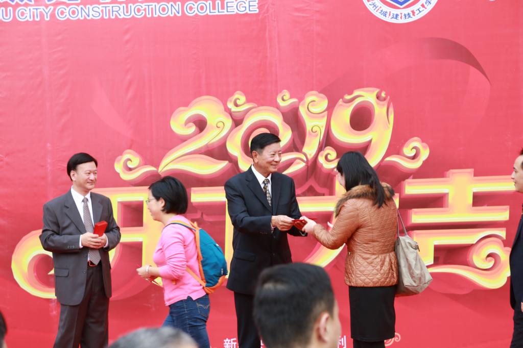“2018年是我校建校以來最輝煌的一年,2019年希望能繼續(xù)發(fā)揚拼搏精神,豬年里諸事順利事業(yè)興旺,學校實現跨越式發(fā)展;全體教職員工身體健康,家庭幸福!”隨后,劉維嘉董事長向每一位教職工派發(fā)開門利是。