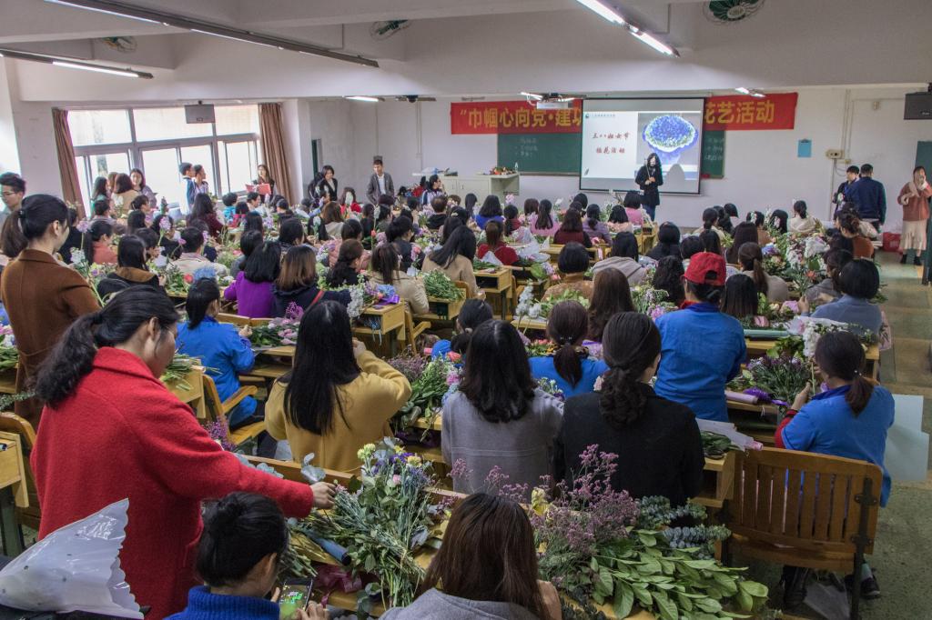 為慶?!叭藝H勞動婦女節(jié)”,3月7日下午,我校在人文藝術樓舉辦了主題為“巾幗心向黨,建功新時代”的花藝活動,170多位女教職工現(xiàn)場體驗了插花藝術的魅力。此次活動以現(xiàn)場教學如何制作一束精美的花束,借此讓女教職工度過一個快樂、溫馨的節(jié)日,表達對全校女教職工的關愛和祝福。