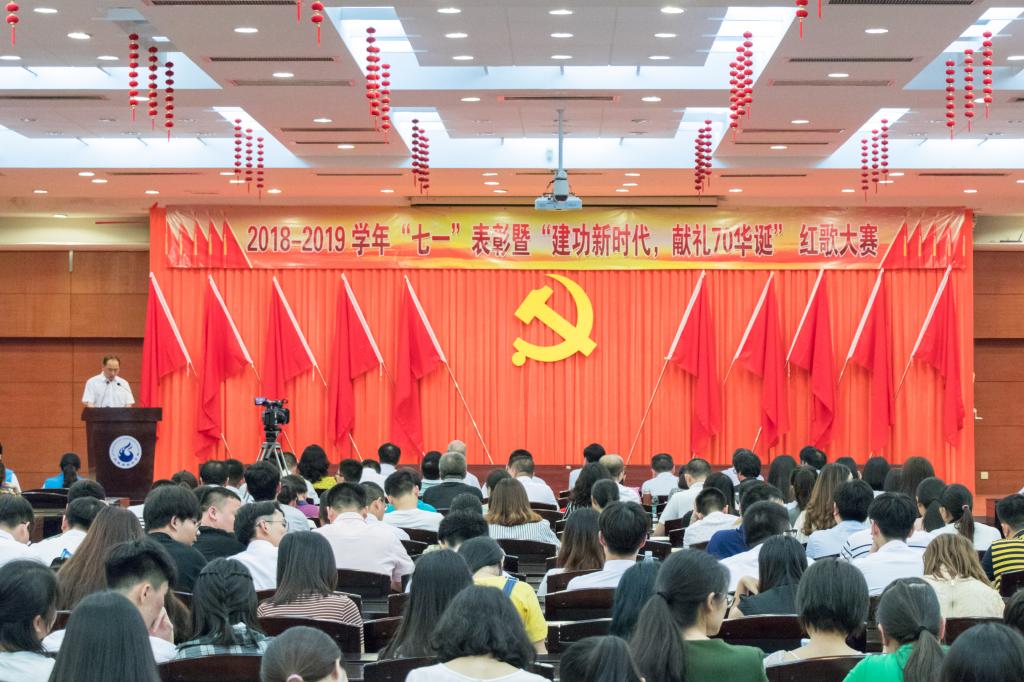 為慶祝中華人民共和國(guó)成立70周年和建黨98周年,總結(jié)成績(jī),表彰先進(jìn),樹(shù)立典范,6月27日晚,學(xué)校在人文藝術(shù)樓四樓報(bào)告廳隆重舉行2018-2019學(xué)年“七一”表彰暨“建功新時(shí)代,獻(xiàn)禮70華誕”紅歌大賽,用紅歌唱響新時(shí)代的主旋律!學(xué)校董事會(huì)執(zhí)行董事、校務(wù)管理委員會(huì)主任張亞斌,校長(zhǎng)蔣新華,黨委書(shū)記楊清國(guó),黨委副書(shū)記、副校長(zhǎng)張德宜,副校長(zhǎng)李志強(qiáng)、周暉、王媚莎,總會(huì)計(jì)師苗紅衛(wèi),校長(zhǎng)助理吳銳及全體師生黨員參加了大會(huì)。大會(huì)由黨委副書(shū)記魯巖主持。