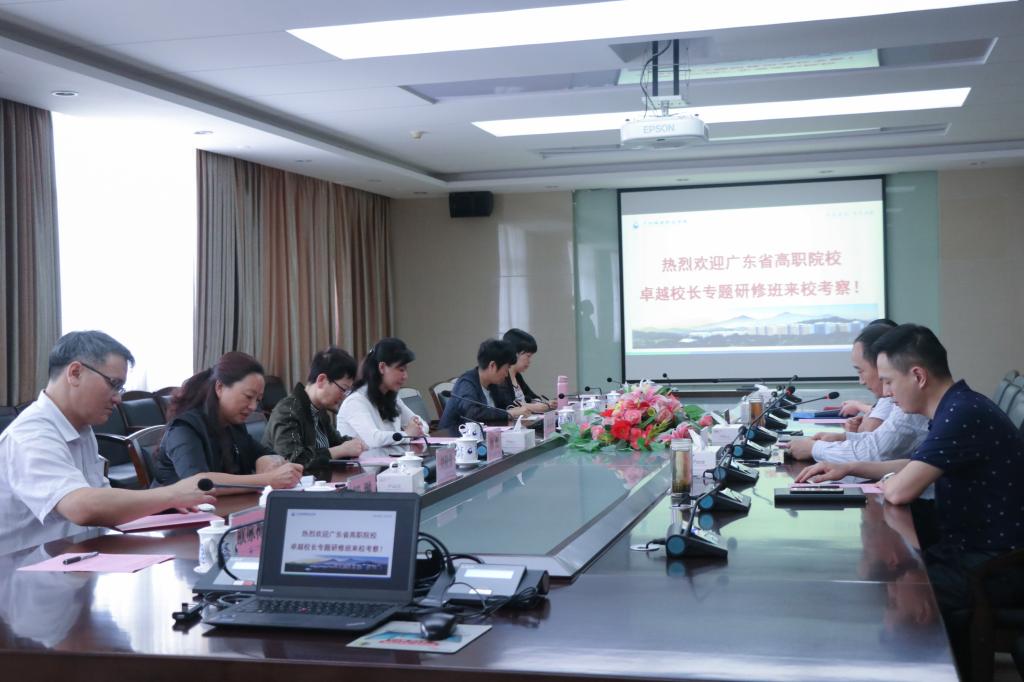 5月10日,廣東技術(shù)師范大學(xué)教師培訓(xùn)和繼續(xù)教育學(xué)院覃易寒院長(zhǎng)帶隊(duì),由廣東外語(yǔ)藝術(shù)職業(yè)學(xué)院等多所高職院校校領(lǐng)導(dǎo)參加的廣東省高職院校卓越校長(zhǎng)專題研修班一行10余人來(lái)??疾旖涣鳌N倚PiL(zhǎng)蔣新華、黨委書(shū)記楊清國(guó)、副校長(zhǎng)周暉等領(lǐng)導(dǎo)參與了接待并與考察團(tuán)座談交流。
