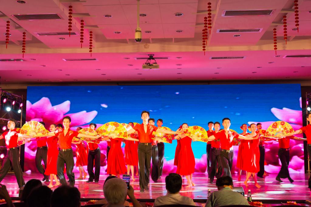最后,全場起立合唱歌舞《我和我的祖國》,悠揚(yáng)的歌聲在化作祝福在師生們心中久久回蕩:祖國你好!老師你好!
