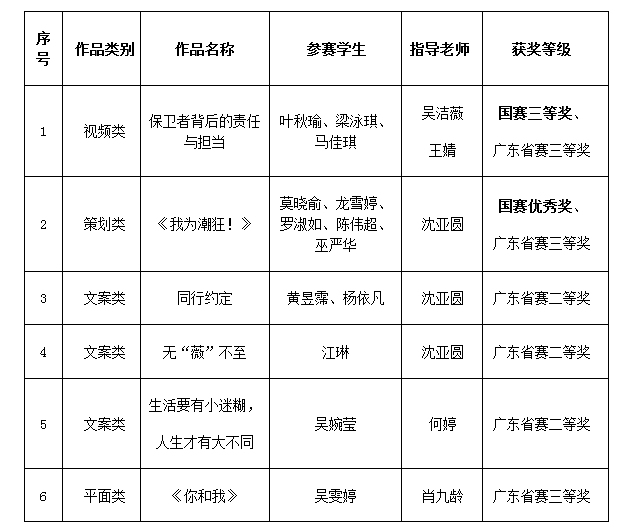 人文學(xué)院新媒體專業(yè)群師生在省賽中獲得二等獎(jiǎng)3項(xiàng)、三等獎(jiǎng)8項(xiàng),共有11項(xiàng)作品入選國(guó)賽,獲獎(jiǎng)比例及等級(jí)居全省同類院校前列。其中吳潔薇、王婧老師指導(dǎo)18級(jí)網(wǎng)絡(luò)新聞與傳播專業(yè)葉秋瑜、梁泳琪、馬佳琪同學(xué)的《保衛(wèi)者背后的責(zé)任與擔(dān)當(dāng)》作品最終獲得國(guó)家三等獎(jiǎng),沈亞圓指導(dǎo)17級(jí)傳播與策劃專業(yè)莫曉俞、龍雪婷、羅淑如、陳偉超、巫嚴(yán)華同學(xué)的作品《我為潮狂!》作品最終獲得國(guó)家優(yōu)秀獎(jiǎng)?!袄蠋熣f,重比賽、強(qiáng)技能,我們專科生也不一定輸給本科生哦”,獲獎(jiǎng)學(xué)生手捧獲獎(jiǎng)證書,滿臉自豪。