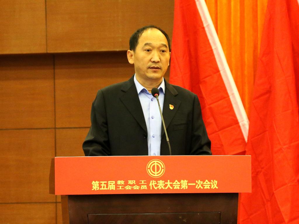 校黨委書記兼校工會(huì)主席楊清國(guó)作第四屆工會(huì)工作報(bào)告,他表示,在過去的幾年里,學(xué)校工會(huì)以習(xí)近平新時(shí)代中國(guó)特色社會(huì)主義思想為指導(dǎo),全面貫徹黨的十九大與十九屆二中、三中、四中全會(huì)精神,認(rèn)真貫徹中央群團(tuán)工作會(huì)議精神、全國(guó)教育大會(huì)精神和中國(guó)工會(huì)十七大精神,在上級(jí)工會(huì)的直接指導(dǎo)和校務(wù)管理委員會(huì)的關(guān)心關(guān)懷下,學(xué)校黨政領(lǐng)導(dǎo)帶領(lǐng)全校教職工緊緊圍繞學(xué)校的中心工作,不忘服務(wù)初心,牢記工會(huì)使命,通過不斷增強(qiáng)全體教職工的主人翁意識(shí)和維權(quán)意識(shí),不斷推進(jìn)學(xué)校治理體系的民主化;通過進(jìn)一步弘揚(yáng)勞模精神、工匠精神,為學(xué)校建設(shè)良好的師德師風(fēng)添磚加瓦;通過積極組織與開展各類文體活動(dòng),在豐富教職工業(yè)余文化生活的同時(shí),搭建起一個(gè)個(gè)教職工溝通的橋梁和展示風(fēng)采的舞臺(tái),為學(xué)校的發(fā)展做好凝心聚力工作;通過履行工會(huì)職責(zé),為教職工辦實(shí)事、做好事、解難題,讓大家在城建找到家與溫暖的感覺。今后一段時(shí)期,工會(huì)工作將以習(xí)近平新時(shí)代中國(guó)特色社會(huì)主義思想為指導(dǎo),全面貫徹落實(shí)黨的十九大精神和習(xí)近平總書記在黨的群團(tuán)工作會(huì)議上的講話精神,始終圍繞學(xué)校中心工作,服務(wù)大局,發(fā)揮工會(huì)的組織優(yōu)勢(shì),在思想引領(lǐng)、民主管理、權(quán)益維護(hù)、民生服務(wù)、自身建設(shè)等各項(xiàng)工作中彰顯新作為,切實(shí)把學(xué)校工會(huì)打造成為教職工的“娘家人”。