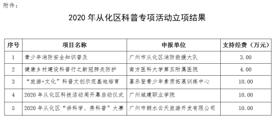 近日,從化區(qū)科工商信局公開(kāi)發(fā)布了2020年從化區(qū)科普專項(xiàng)活動(dòng)立項(xiàng)結(jié)果,包括“旅游+文化”科普文創(chuàng)示范基地培育、2020年從化區(qū)科技活動(dòng)周開(kāi)幕啟動(dòng)儀式、2020年從化區(qū)“講科學(xué)、秀科普”大賽、健康鄉(xiāng)村建設(shè)科普行之新冠肺炎防護(hù)、青少年消防安全知識(shí)普及等五個(gè)項(xiàng)目,我校信息工程學(xué)院申報(bào)的《2020年從化區(qū)科技活動(dòng)周開(kāi)幕啟動(dòng)儀式》項(xiàng)目獲得立項(xiàng),支持經(jīng)費(fèi)10萬(wàn)元。這也是繼去年人文學(xué)院獲得該項(xiàng)目立項(xiàng)后我校再次獲批立項(xiàng),也體現(xiàn)了學(xué)校長(zhǎng)期以來(lái)注重開(kāi)展科技創(chuàng)新和科學(xué)普及活動(dòng)受到當(dāng)?shù)卣母叨日J(rèn)可。據(jù)悉,本次項(xiàng)目申報(bào)書(shū)結(jié)合了當(dāng)前疫情防控要求,圍繞活動(dòng)主題,策劃了線上線下相結(jié)合的科普宣傳活動(dòng)。旨在開(kāi)展形式新穎、內(nèi)容豐富的科普活動(dòng),努力提高全民科學(xué)素養(yǎng),開(kāi)創(chuàng)區(qū)域科普工作新局面。