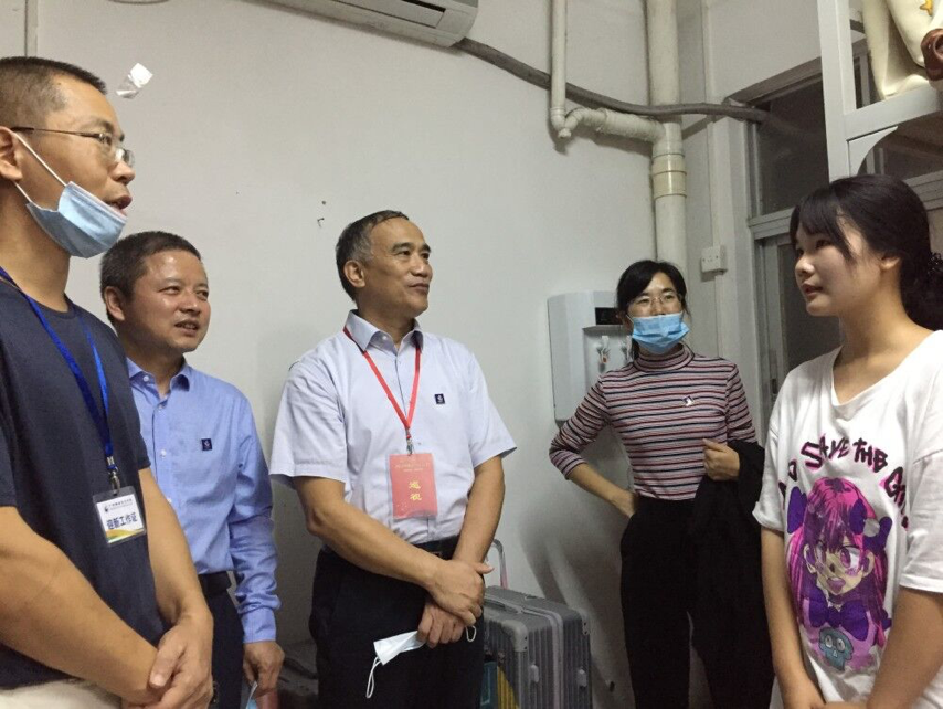 10日晚,校長(zhǎng)蔣新華、黨委書記黃學(xué)茭,副校長(zhǎng)楊清國(guó)、張德宜、李志強(qiáng)、周暉、王媚莎,黨委副書記魯巖,總會(huì)計(jì)師苗紅衛(wèi),校長(zhǎng)助理吳銳等走訪了各二級(jí)學(xué)院新生宿舍,了解新生生活情況,并針對(duì)存在的困難和問(wèn)題給予及時(shí)解決。