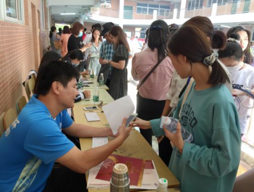 各專業(yè)報(bào)到點(diǎn)接待人員積極、主動(dòng)、耐心、細(xì)致地為新生和家長(zhǎng)答疑,認(rèn)真核對(duì)錄取通知書、身份證,發(fā)放學(xué)生手冊(cè)和日程安排表,引導(dǎo)新生完成繳費(fèi)、注冊(cè)、辦卡等手續(xù),幫助新生領(lǐng)取生活用品、校園卡等。報(bào)到點(diǎn)還開通了“綠色通道”,為貧困學(xué)生提供助學(xué)貸款幫助,保障困難學(xué)子順利入學(xué)。
