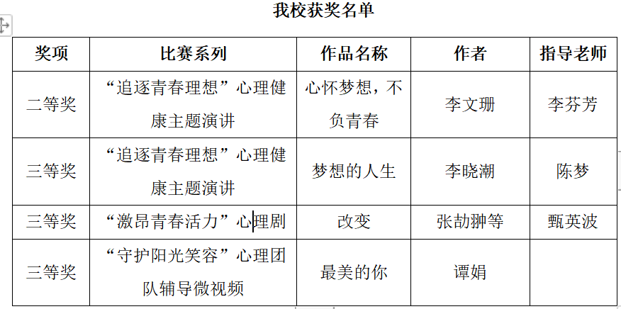 近日,由廣東省教育廳、廣東省高校心理健康教育與咨詢專業(yè)委員會共同指導(dǎo)開展的2019年度高校學(xué)生心理健康教育系列活動結(jié)果揭曉,我校共獲得二等獎一項(xiàng),三等獎三項(xiàng)。