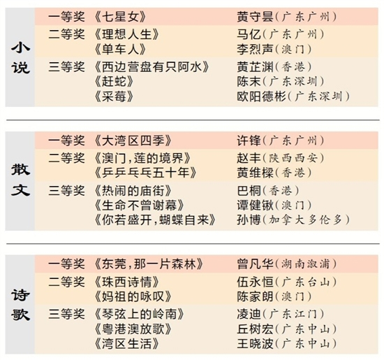 7月7日,首屆“粵港澳大灣區(qū)文學(xué)征文大賽”活動(dòng)結(jié)果揭曉。經(jīng)過初評(píng)、復(fù)評(píng)、終評(píng)等環(huán)節(jié),18篇作品脫穎而出,分別獲得小說、散文、詩歌三個(gè)類別的一、二、三等獎(jiǎng)。我校黨委宣傳部部長、國家一級(jí)作家許鋒的作品《大灣區(qū)四季》獲大賽散文類作品一等獎(jiǎng)。