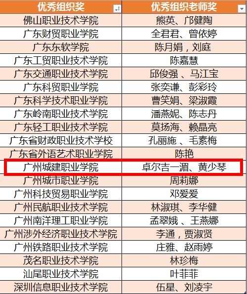 優(yōu)秀組織獎及優(yōu)秀組織老師獎名單