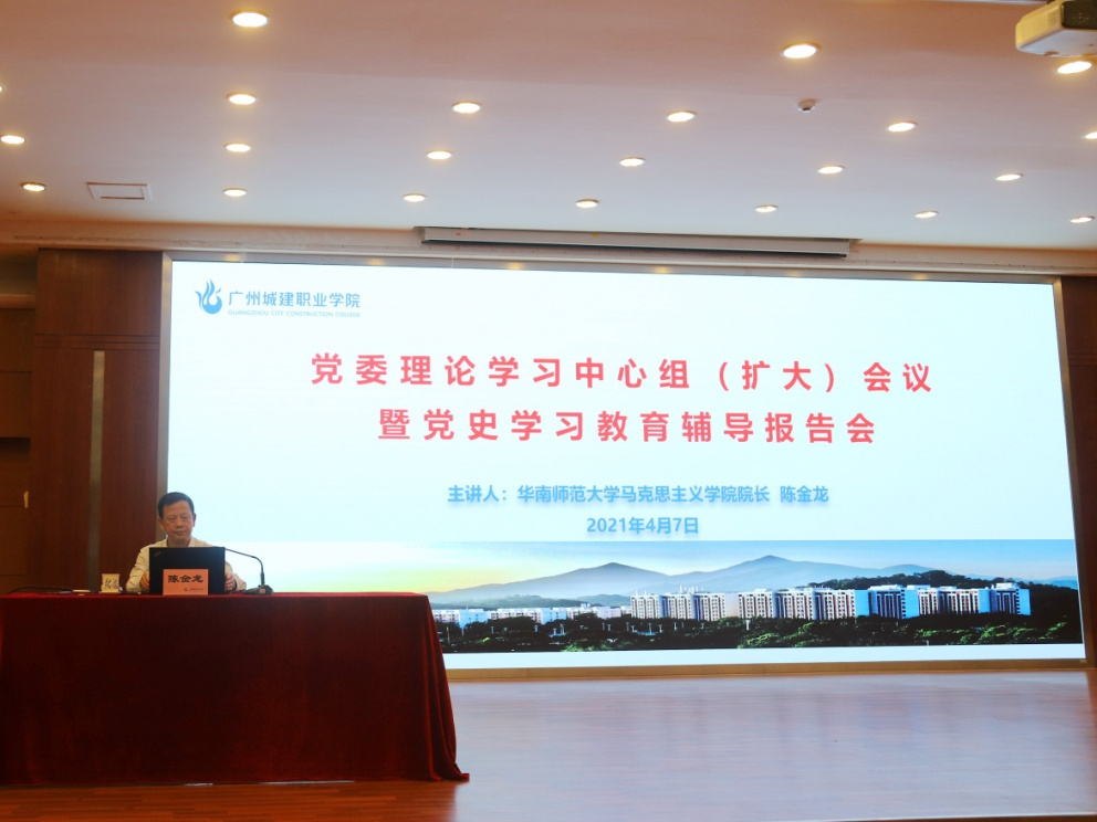 4月7日,學(xué)校黨委在人文藝術(shù)樓四樓報告廳召開黨委理論學(xué)習(xí)中心組(擴(kuò)大)會議暨黨史學(xué)習(xí)教育輔導(dǎo)報告會,邀請黨史專家、廣東省黨史學(xué)習(xí)教育宣講團(tuán)主要成員、華南師范大學(xué)馬克思主義學(xué)院院長陳金龍教授作題為《大歷史觀視域下的中國共產(chǎn)黨歷史》的輔導(dǎo)報告。學(xué)校校領(lǐng)導(dǎo)、黨委委員、紀(jì)委委員、黨委理論學(xué)習(xí)中心組成員、全體中層管理干部、馬克思主義學(xué)院全體教師、全體輔導(dǎo)員及學(xué)生代表近300人現(xiàn)場參加會議。會議由學(xué)校黨委書記黃學(xué)茭主持。