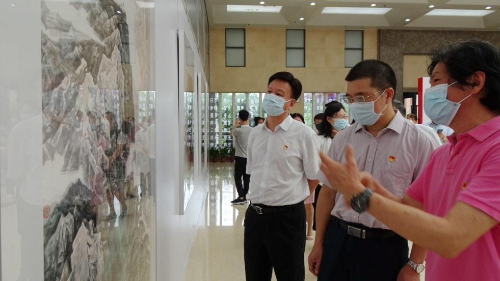 黃學茭在致辭中表示:“劉境奇教授以深厚功底、紅色情懷、創(chuàng)作激情、忘我付出,為慶祝中國共產黨成立100周年獻上了一份厚禮。這份厚禮也代表了學校2萬余名師生‘永遠跟黨走’的共同心聲。從劉境奇教授一幅幅蒼勁有力、濃墨重彩的作品中,我們仿佛看到了山下旌旗在望,仿佛聽到了黃洋界上炮聲隆隆,歷史化的井岡山展現在我們面前,并帶著我們走進中國共產黨波瀾壯闊、風云激蕩的百年歷史。在黨史學習教育中,我們要堅持學習黨史與學習新中國史、改革開放史、社會主義發(fā)展史相貫通,做到學史明理、學史增信、學史崇德、學史力行,從而深刻認識到紅色政權來之不易、中華人民共和國來之不易、中國特色社會主義來之不易,深刻認識到中國共產黨為什么能、馬克思主義為什么行、中國特色社會主義為什么好,進而珍惜今天來之不易的幸福生活,堅定對黨的領導的信念,做到知史愛黨、知史愛國,為實現中華民族偉大復興中國夢而接續(xù)奮斗?!?/p>