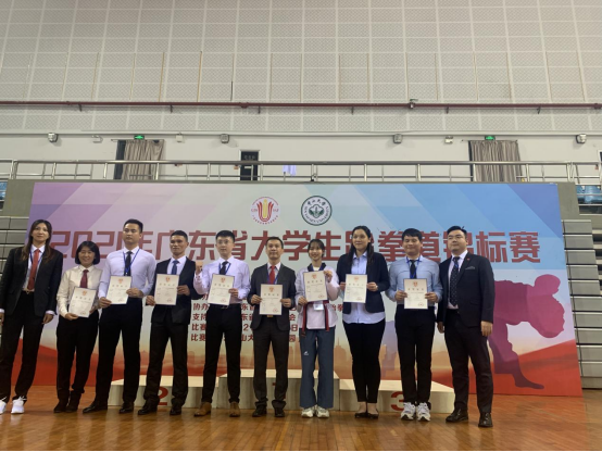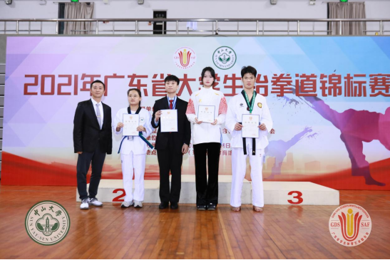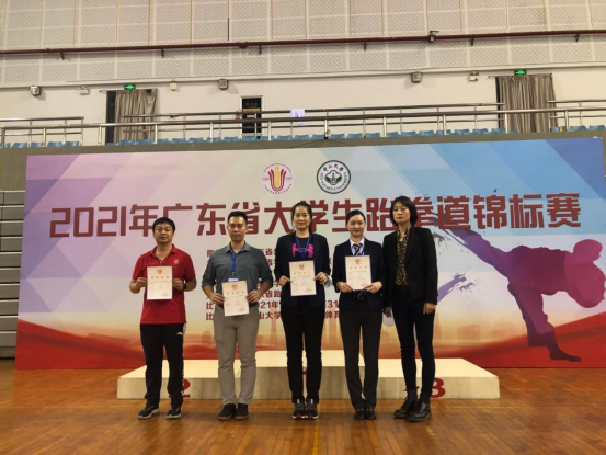 10月28日至31日,由廣東省教育廳、廣東省學(xué)生體育藝術(shù)聯(lián)合會(huì)主辦,中山大學(xué)承辦——2021年廣東省大學(xué)生跆拳道錦標(biāo)賽在中山大學(xué)(大學(xué)城校區(qū))體育館舉行。我校體育健康學(xué)院院長(zhǎng)李建軍擔(dān)任領(lǐng)隊(duì),體育健康學(xué)院辦公室主任、學(xué)校體育運(yùn)動(dòng)委員會(huì)辦公室副主任易木壽擔(dān)任主教練,學(xué)校跆拳道隊(duì)隊(duì)員參加跆拳道丙組(專科組)乙A組(體育專業(yè)組,含本科)比賽,經(jīng)過(guò)激烈比拼,獲得8金11銀29銅,21項(xiàng)第五名,1項(xiàng)第六名,1項(xiàng)第八名,以及丙組團(tuán)體總分第一名的好成績(jī)。易木壽、陳國(guó)勝教練被評(píng)為優(yōu)秀教練員,郭泰承同學(xué)獲得丙組唯一最佳技術(shù)獎(jiǎng)。