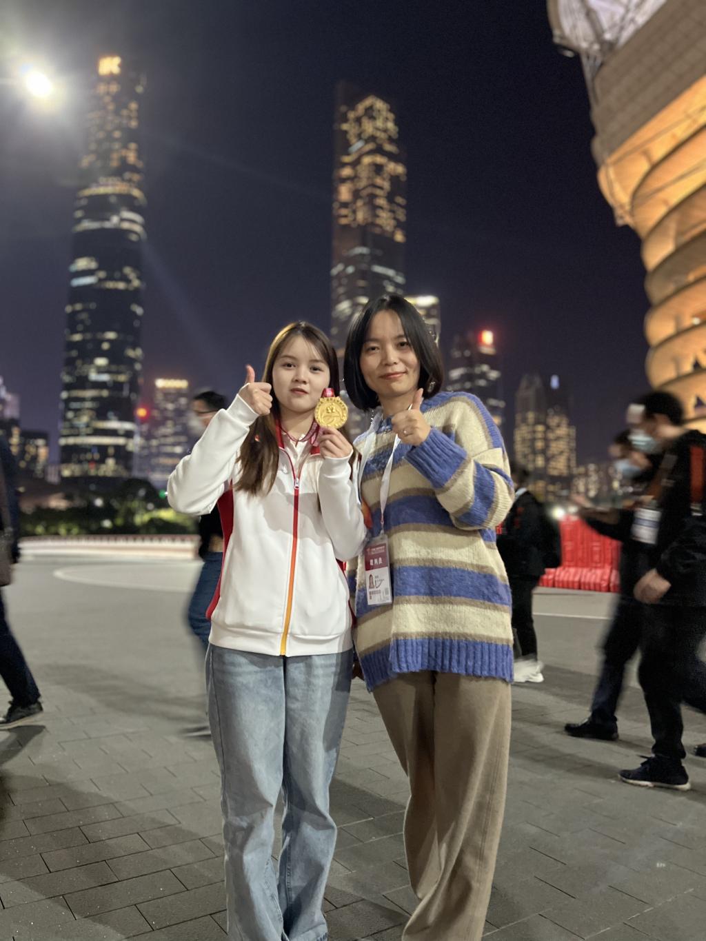 銅牌獲得者之一劉俊林與指導教師劉萍合影