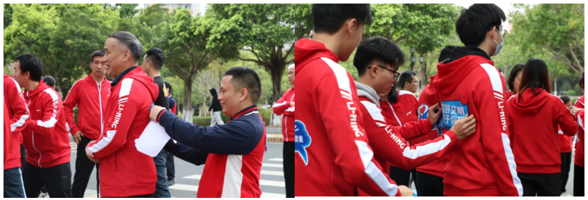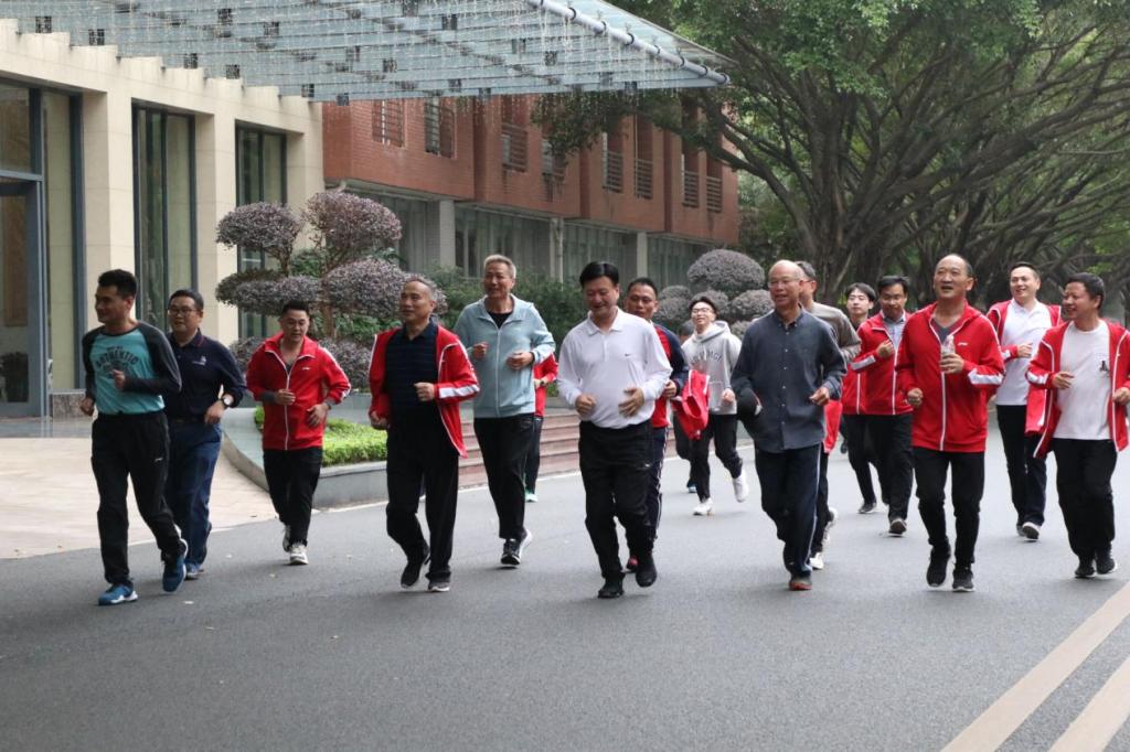 在跑步過(guò)程中,我校校長(zhǎng)蔣新華還情不自禁地唱起“太陽(yáng)出來(lái)了,太陽(yáng)光芒萬(wàn)丈,萬(wàn)丈光芒……”為大家加油鼓勁。