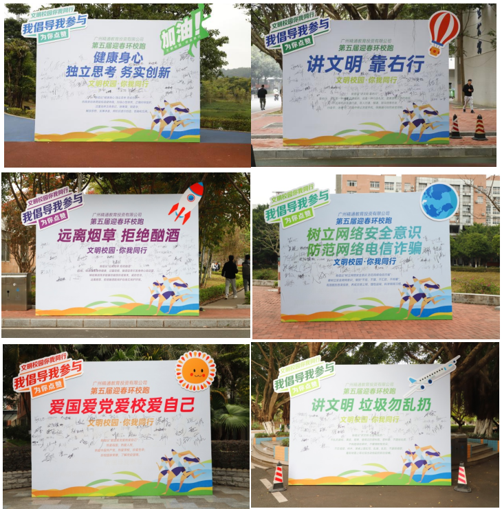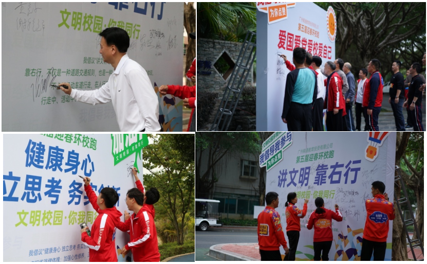 環(huán)校跑以“文明校園·你我同行”為主題,通過(guò)在沿途設(shè)置的六張系列“倡議書”上簽名打卡的形式,倡導(dǎo)更多的師生員工參與到共建文明校園的隊(duì)伍中來(lái)。每到一處打卡點(diǎn),大家紛紛在“倡議書”上簽名,表達(dá)對(duì)共創(chuàng)文明校園的承諾。