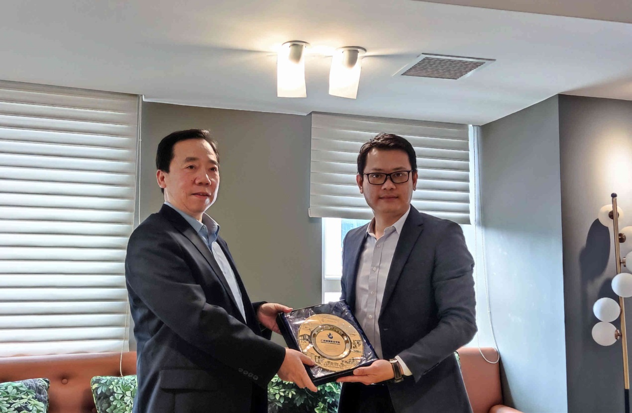魯巖向馮家健處長贈送學(xué)校紀(jì)念盤
