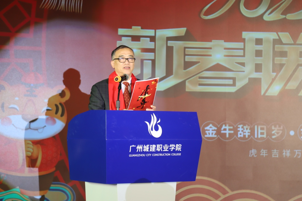 聯(lián)歡會(huì)在人文藝術(shù)樓四樓報(bào)告廳舉行。校長(zhǎng)蔣新華、黨委書記黃學(xué)茭,廣州城建技工學(xué)校校長(zhǎng)葉忠,我校首任校長(zhǎng)張富良、第二任校長(zhǎng)劉國(guó)生等公司、學(xué)校領(lǐng)導(dǎo)與全體教職員工歡聚一堂,回憶不平凡的2021年,共迎2022年新春。