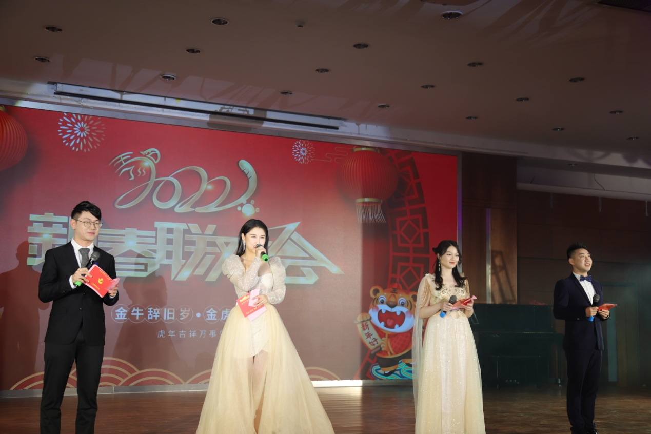 2022新春聯(lián)歡會(huì)由學(xué)校工會(huì)主辦。由于疫情防控需要,所有進(jìn)場(chǎng)人員均經(jīng)過嚴(yán)格的測(cè)溫、消毒,并全程佩戴口罩。