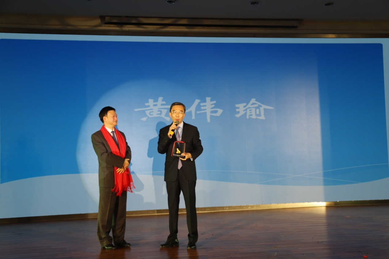 張亞斌為做出特殊貢獻(xiàn)的城建英雄李佛君、邱漠河、劉境奇、黃偉瑜頒發(fā)獎(jiǎng)金、特制“金虎”