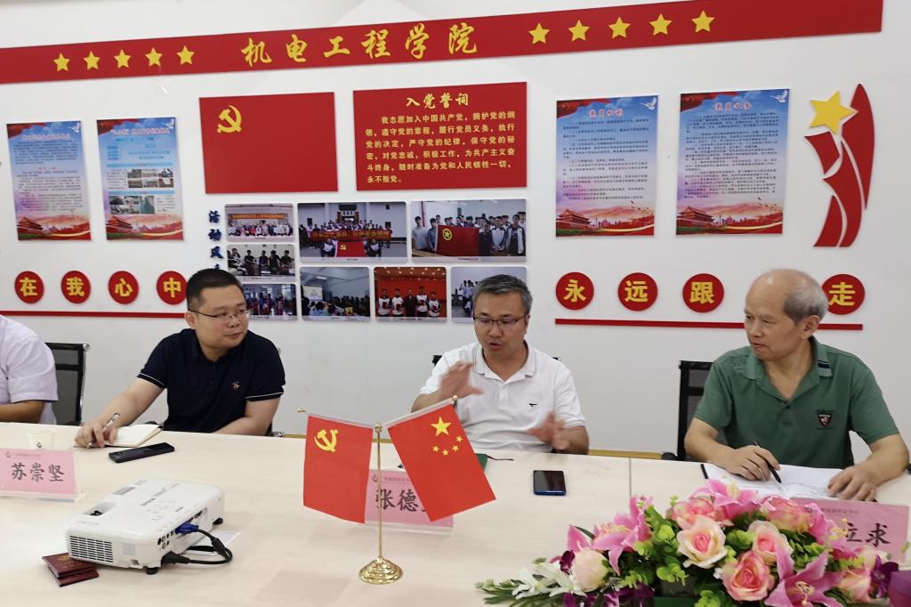 機(jī)電工程學(xué)院院長(zhǎng)周立求就項(xiàng)目建設(shè)、實(shí)踐運(yùn)用、校企合作等方面的情況及目前遇到的困難進(jìn)行了詳細(xì)匯報(bào)。張德宜對(duì)智能制造生產(chǎn)線在科學(xué)研究、校企合作方面的前景表示肯定并充滿期待,他還介紹了兄弟院校在設(shè)備改造與升級(jí)方面的成功經(jīng)驗(yàn),希望機(jī)電工程學(xué)院進(jìn)一步開展企業(yè)調(diào)研,對(duì)接行業(yè)發(fā)展需求,依托高端實(shí)驗(yàn)實(shí)訓(xùn)設(shè)備,全面提升全院科研水平及社會(huì)服務(wù)能力。