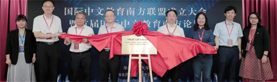 李金俊處長(zhǎng)與華師領(lǐng)導(dǎo)等共同為國(guó)際中文教育南方聯(lián)盟揭牌