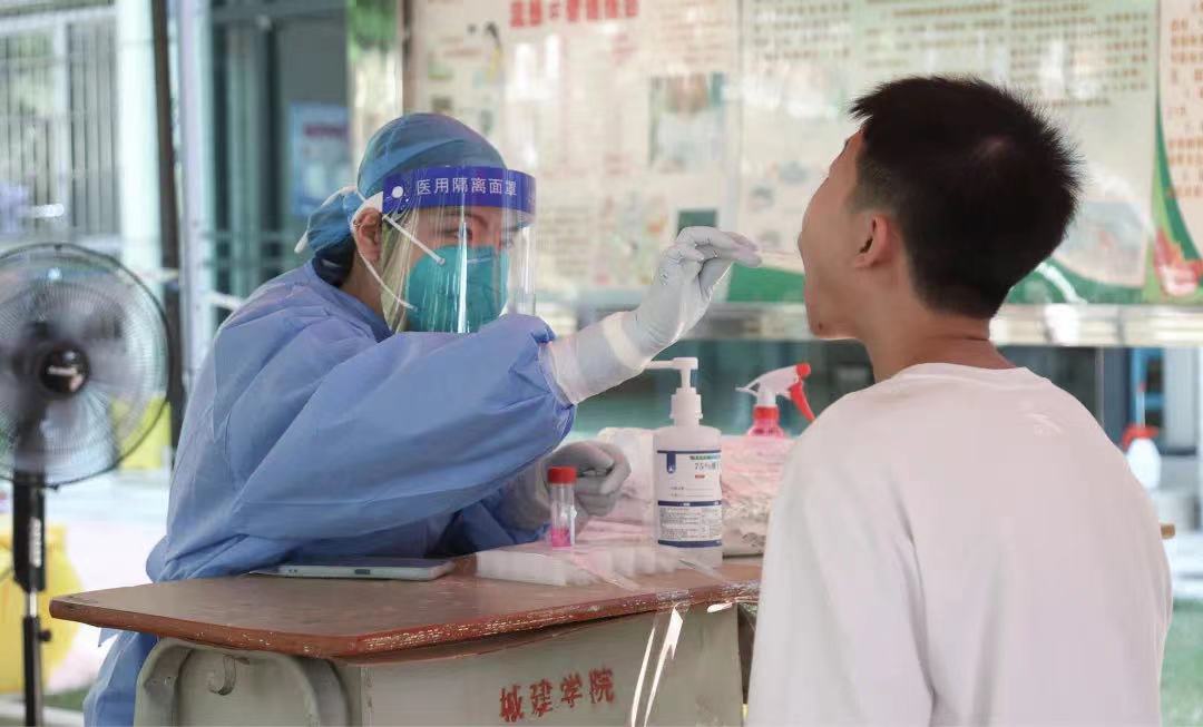 為做好疫情防控常態(tài)化下的新生報到工作,我校不斷細化完善工作方案,嚴格落實各項措施,將疫情防控工作貫徹于新生報到過程始終。報到現(xiàn)場,新生在工作人員的引導下錯峰分流,依次完成“身份驗證-體溫檢測-健康碼查驗-核酸檢測”等流程,全體工作人員分工協(xié)作,堅決把好入學疫情防控“第一關”。