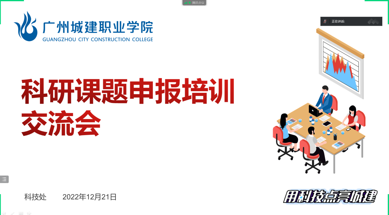 12月21日,學??蒲姓n題申報培訓交流會以線上形式進行,學校副校長張德宜、發(fā)展規(guī)劃辦公室副主任趙新成、信息工程學院科研副院長李燦彬作為指導專家出席會議,共有200余位教師參加培訓。會議由科技處處長熊曉波主持。