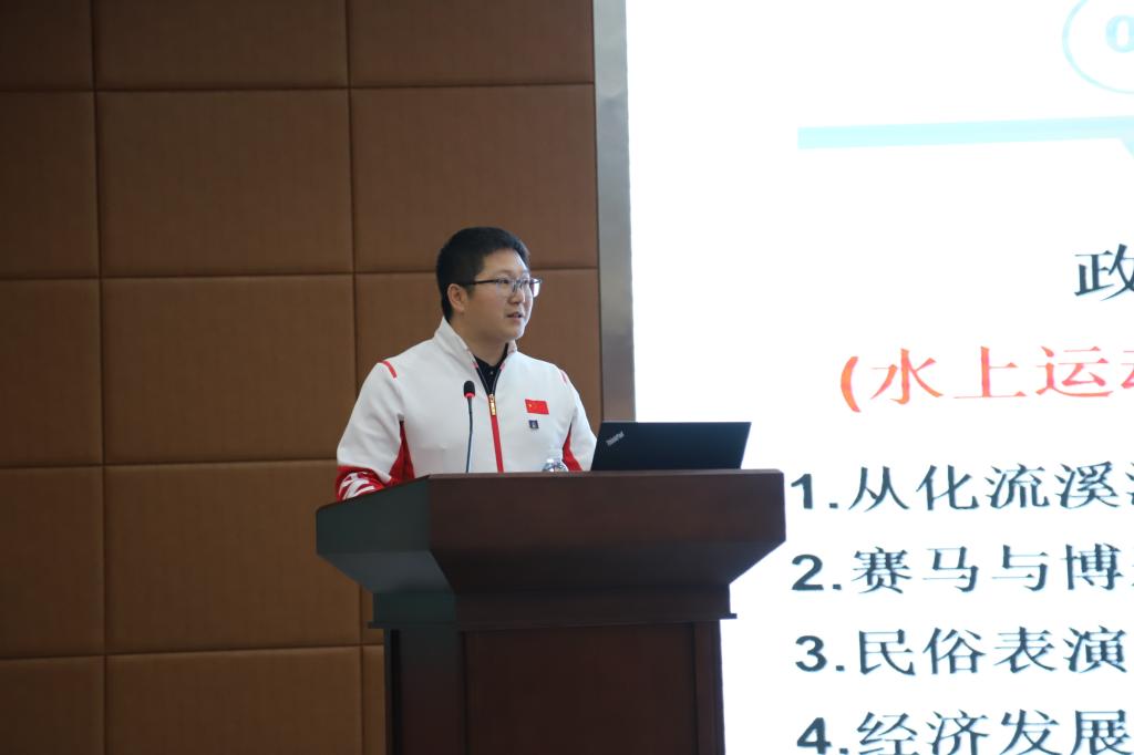 最后,我校體育健康學院副院長郝世煜從七個方面作了研究中心發(fā)展規(guī)劃的報告。報告指出,中心將以加強人才隊伍建設、體育產(chǎn)業(yè)專項課題研究、體育賽事服務和體育產(chǎn)業(yè)專業(yè)人才培養(yǎng)為主要任務,到2030年,打造引領全區(qū)、輻射全省的體育產(chǎn)業(yè)服務中心,協(xié)助政府把山地戶外體育旅游目的地、溫泉康養(yǎng)基地和賽馬產(chǎn)業(yè)研究中心等建成國內(nèi)具有一定影響力和知名度的品牌項目,推動從化區(qū)體育產(chǎn)業(yè)融合發(fā)展。
