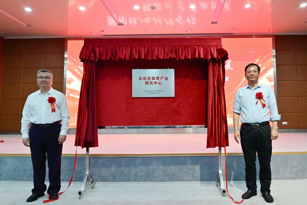 張志堅宣讀了《廣州市從化區(qū)文化廣電旅游體育局關于政校聯(lián)合共建從化區(qū)體育產(chǎn)業(yè)研究中心的函》。在現(xiàn)場熱烈的掌聲中,與會領導為從化區(qū)體育產(chǎn)業(yè)研究中心揭牌。