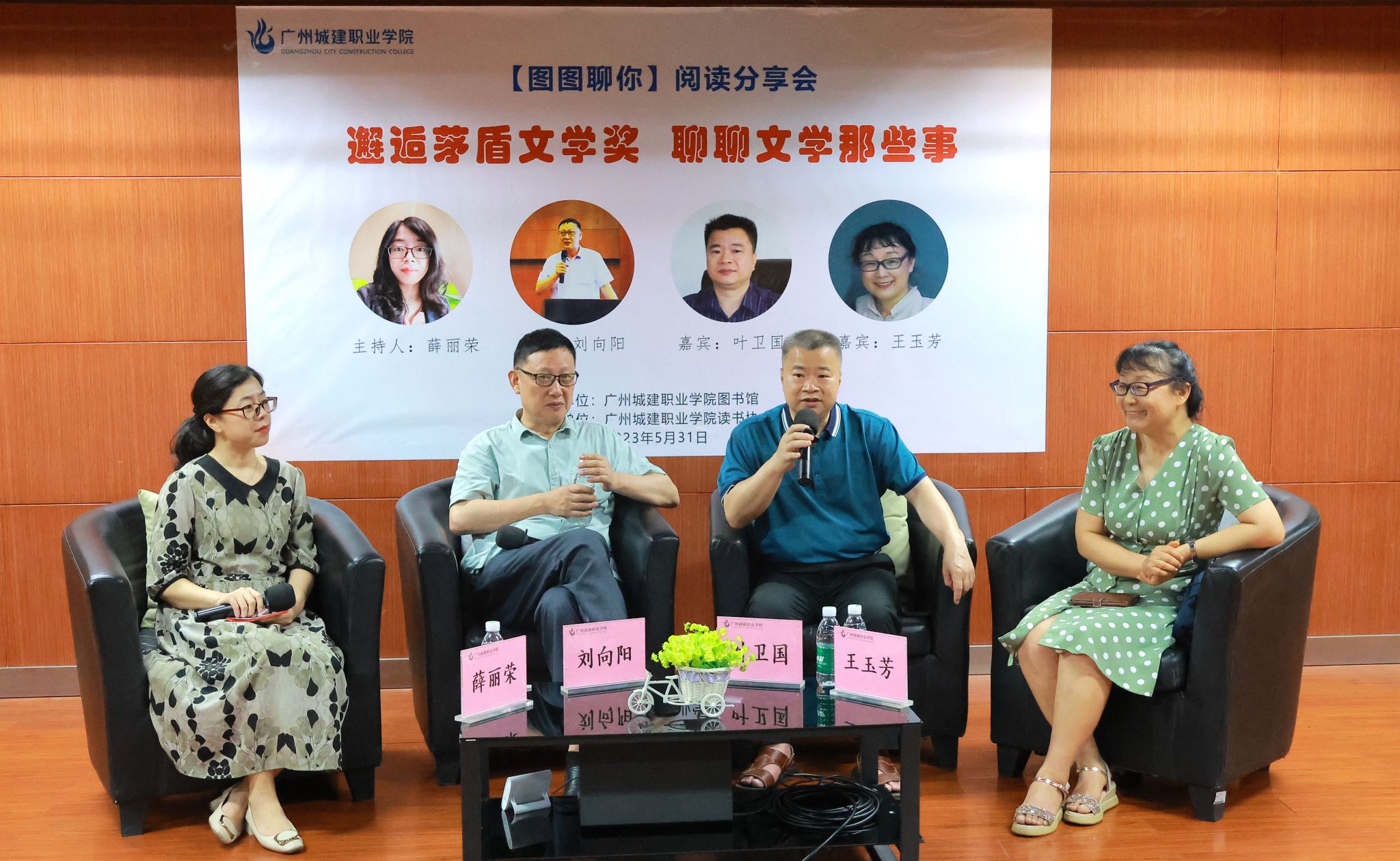 閱讀給人以力量,5月31日晚,我校第十六屆讀書節(jié)活動之“圖圖聊你”閱讀分享會在圖書館305報告廳如期舉辦。本期分享會以“邂逅茅盾文學獎,聊聊文學那些事”為主題,以訪談的形式舉行,邀請到廣州市從化區(qū)作協(xié)主席、我校工會副主席劉向陽副教授,從化區(qū)作協(xié)常務副主席、黨支部書記葉衛(wèi)國高級教師,我校人文學院王玉芳教授擔任嘉賓,并作主題分享。圖書館館長姜新春及252名師生參與了分享會。分享會由圖書館館長助理薛麗榮主持。