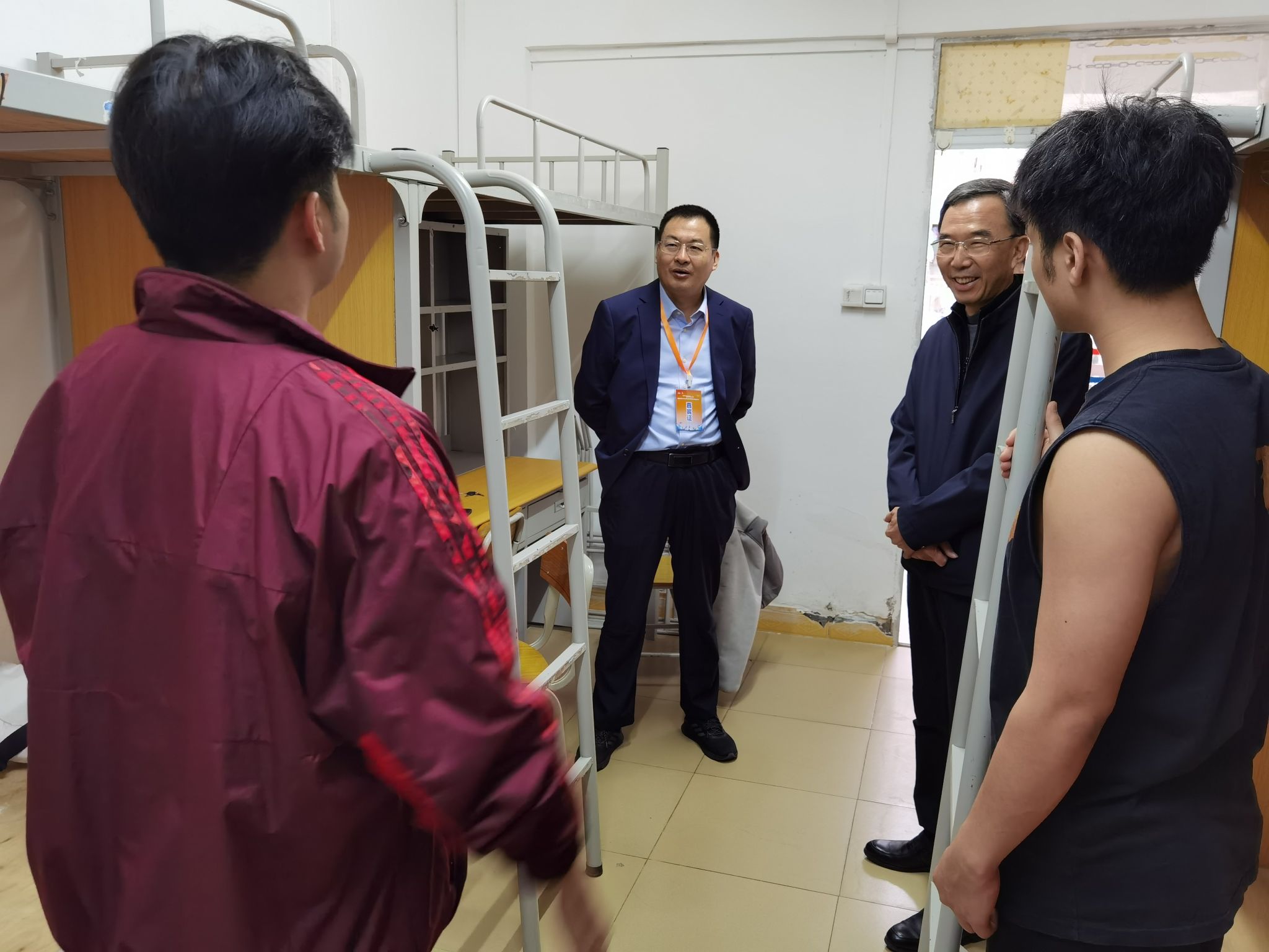 程大欣一行深入學生宿舍和學生食堂,檢查宿舍設(shè)施、消防安全設(shè)施、監(jiān)控、水電系統(tǒng)和食品安全管理情況,重點對學生宿舍區(qū)域電動車停放等安全隱患進行了現(xiàn)場檢查指導。在學生宿舍,程大欣與同學們進行了親切交談,詢問同學們在校學習生活狀況,了解同學們未來就業(yè)與職業(yè)規(guī)劃情況,他鼓勵同學們要加強體育鍛煉,刻苦學習,積極參與廣東省的各類競賽活動,提高綜合素質(zhì)能力,提升未來職場競爭力。