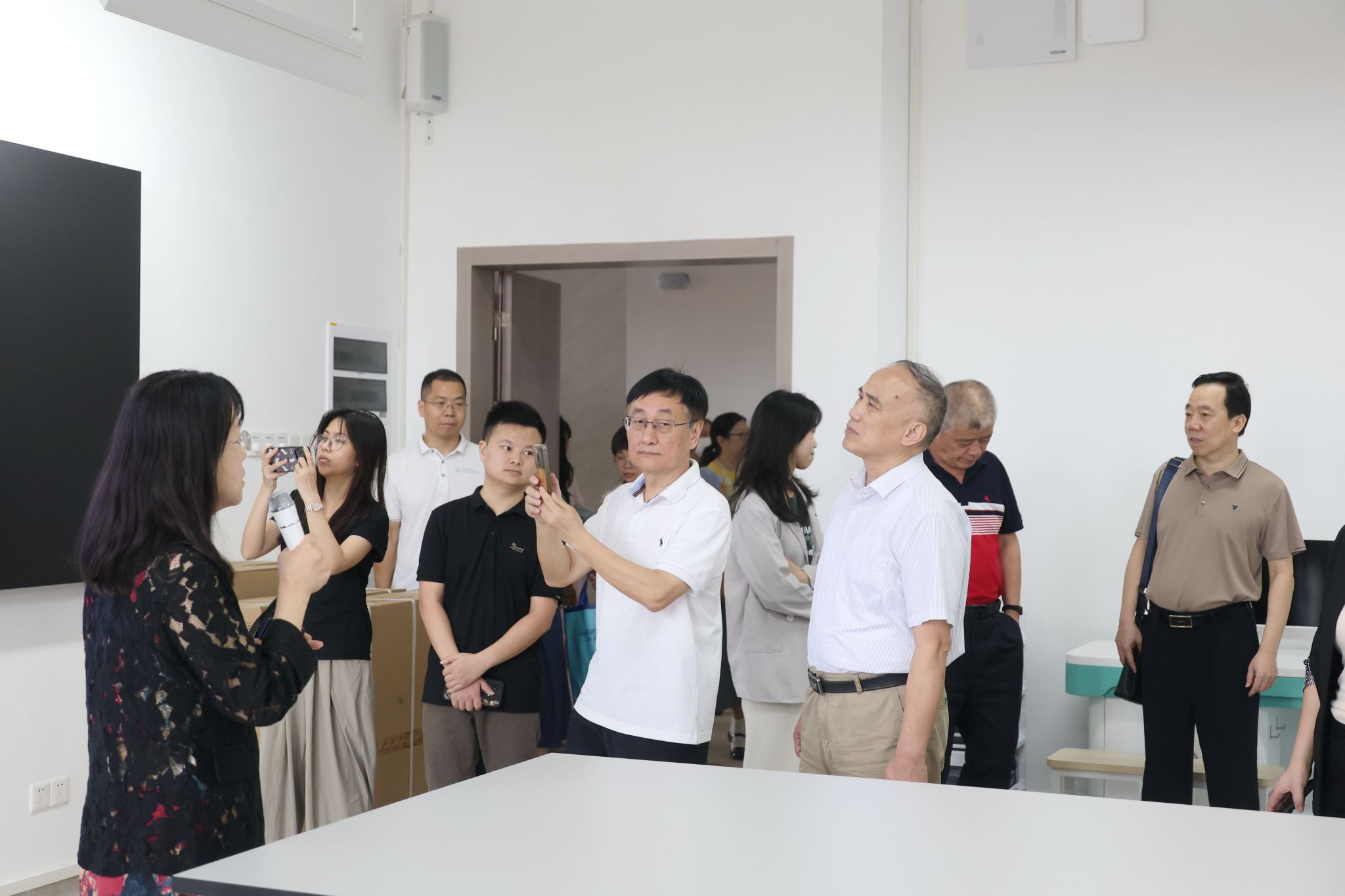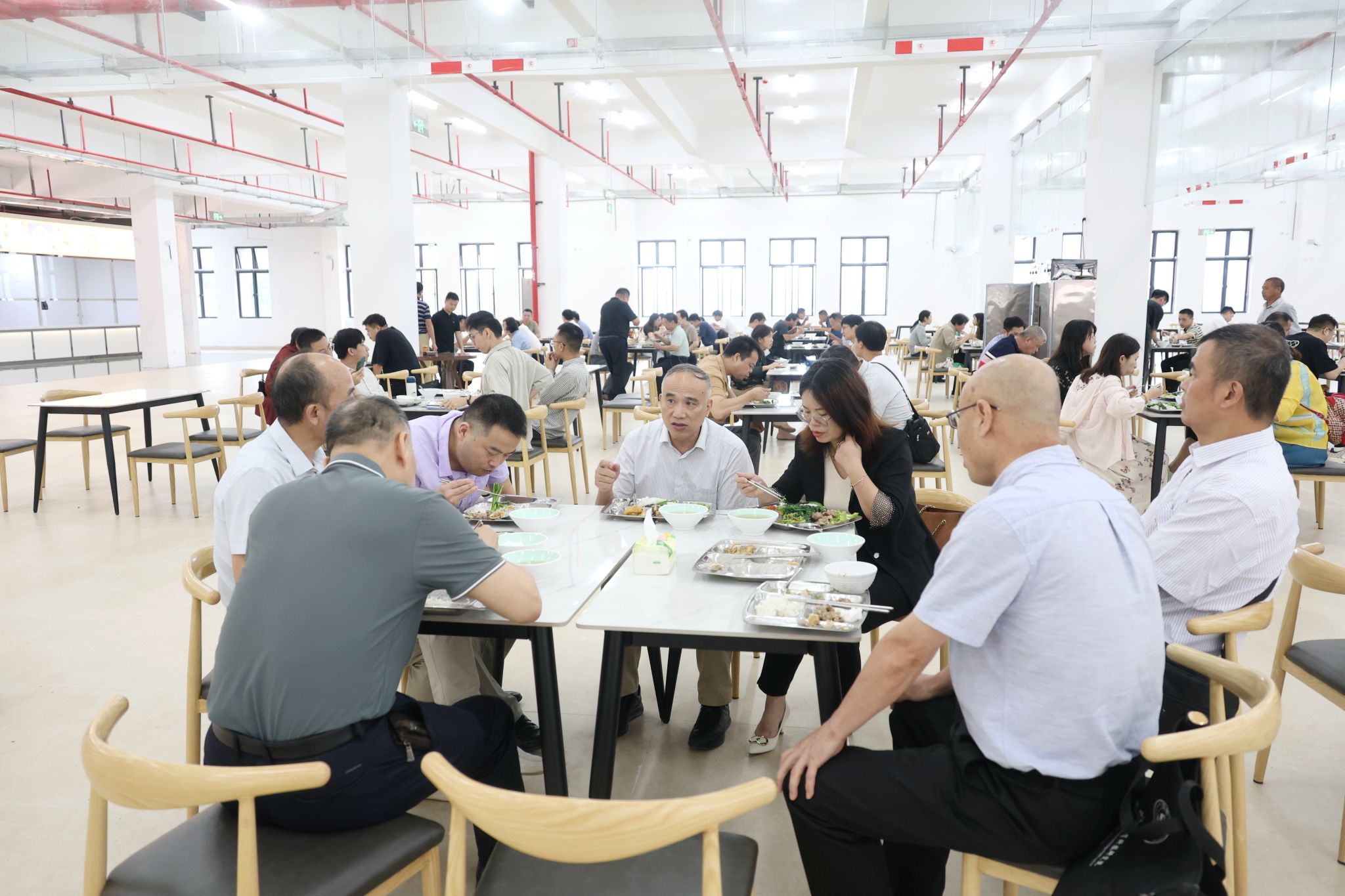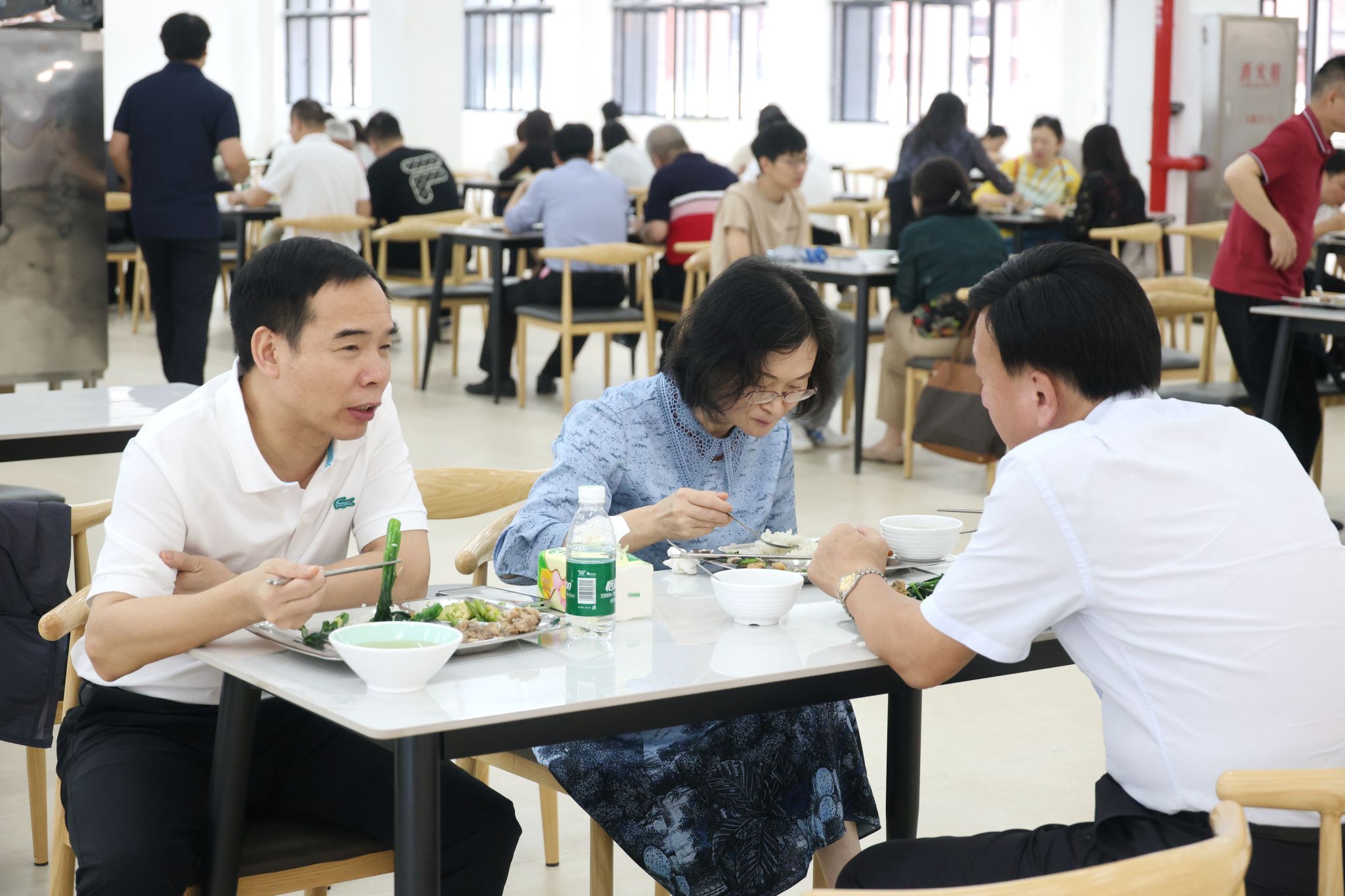 會(huì)前,蔣新華等校領(lǐng)導(dǎo)帶隊(duì)查看了新校區(qū)教學(xué)設(shè)施、圖書(shū)館、實(shí)訓(xùn)室、多媒體課室、學(xué)生食堂等現(xiàn)場(chǎng)情況。會(huì)后,全體與會(huì)人員一起走進(jìn)新校區(qū)食堂,在寬敞明亮的餐廳內(nèi)試吃了新校區(qū)食堂第一餐。