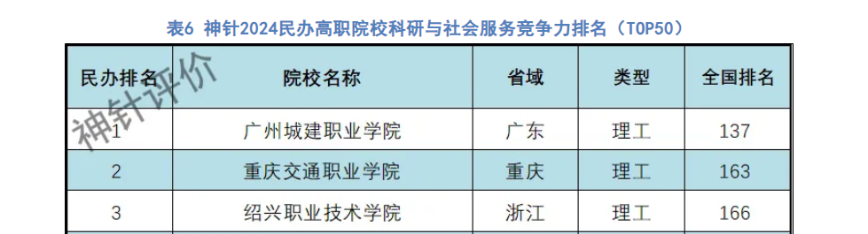 近日,全國(guó)第三方評(píng)價(jià)機(jī)構(gòu)神針評(píng)價(jià)(SZPJ)發(fā)布《2024中國(guó)高職院??蒲信c社會(huì)服務(wù)競(jìng)爭(zhēng)力排行榜》,我校位列全國(guó)高職第137位、全國(guó)民辦高職第1位。
