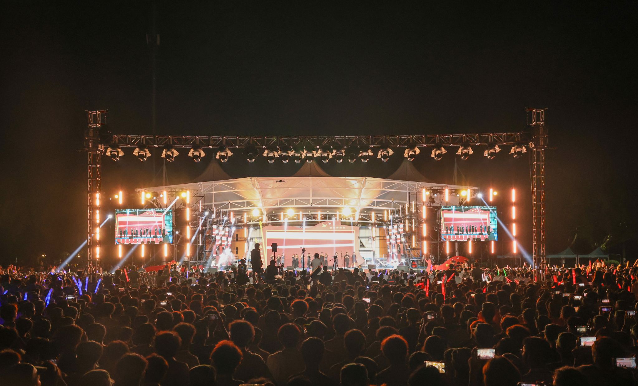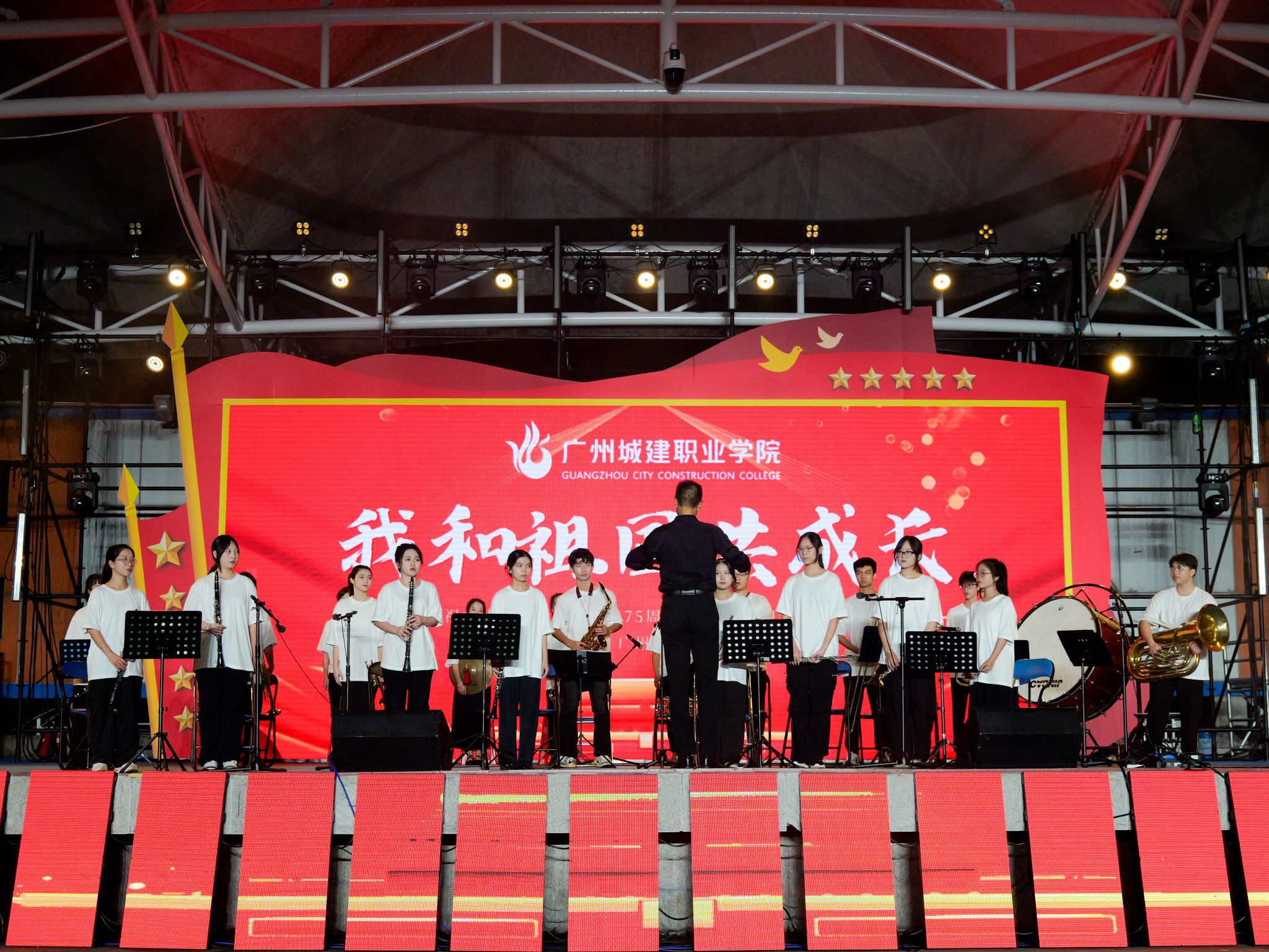 9月19日晚,我校廣州校區(qū)在三區(qū)文體廣場(chǎng)舉辦以“我和祖國(guó)共成長(zhǎng)”為主題的慶祝中華人民共和國(guó)成立75周年暨2024年迎新文藝晚會(huì)。學(xué)校董事會(huì)執(zhí)行董事、校務(wù)管理委員會(huì)主任張亞斌,黨委書(shū)記黃學(xué)茭、執(zhí)行校長(zhǎng)李國(guó)年等校管會(huì)領(lǐng)導(dǎo)、校領(lǐng)導(dǎo),各黨政職能部門(mén)負(fù)責(zé)人、廣州校區(qū)各學(xué)院黨政負(fù)責(zé)人、新生班輔導(dǎo)員,與全體2024級(jí)新生歡聚一堂,共享視聽(tīng)盛宴。