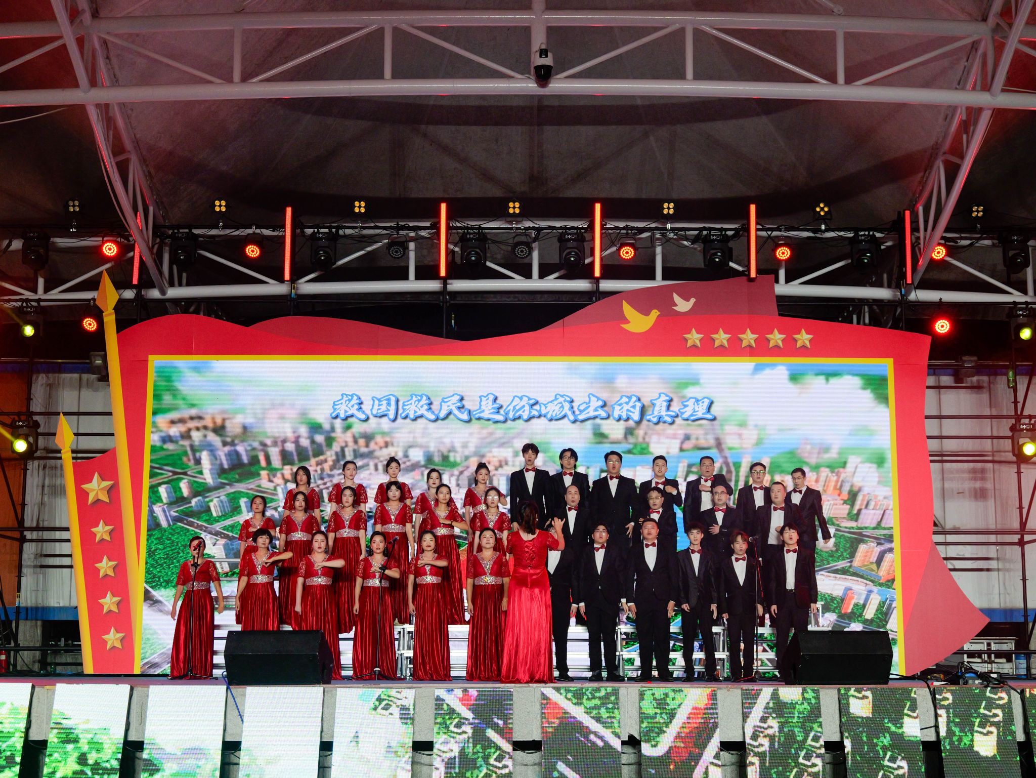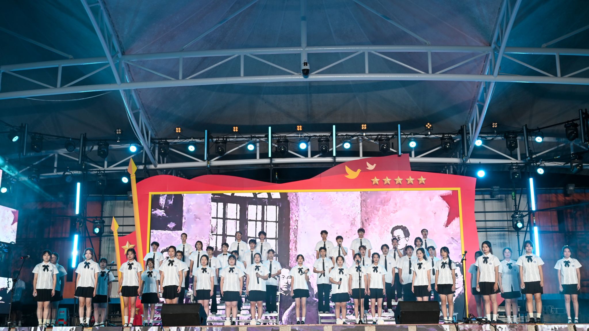 晚會(huì)分為“薪火相傳”“探索奮進(jìn)”“逐夢(mèng)啟航”三個(gè)篇章,在歌聲悠揚(yáng)的《我和祖國(guó)在一起》表演中拉開(kāi)序幕。