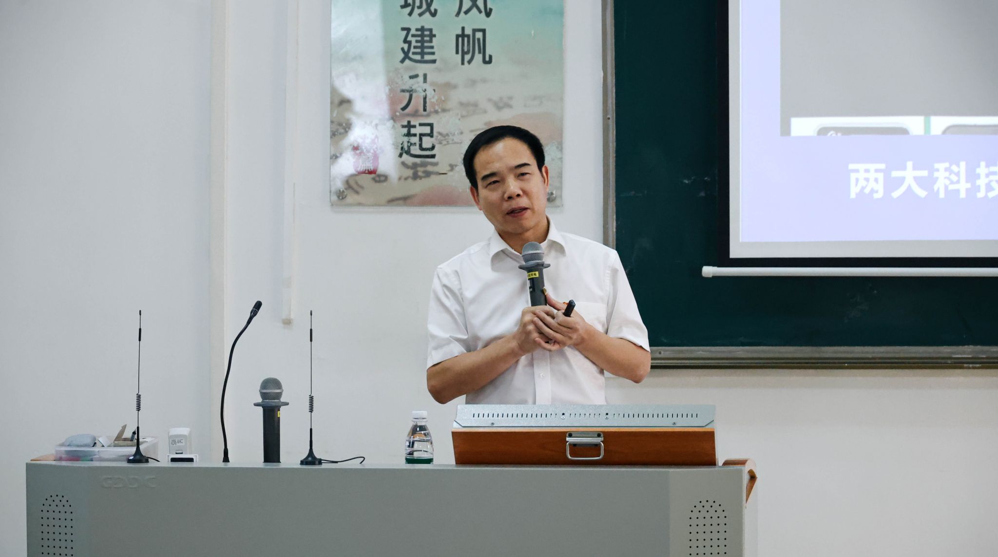 “新時(shí)代全面深化改革成效如何?取得了那些科技成就?”李國(guó)年指出,推進(jìn)中國(guó)式現(xiàn)代化,科學(xué)技術(shù)是關(guān)鍵。全面深化改革以來(lái),科技體制改革全面發(fā)力、多點(diǎn)突破、縱深發(fā)展,我國(guó)在很多領(lǐng)域?qū)崿F(xiàn)了從追蹤、跟跑到并跑、領(lǐng)跑的歷史性轉(zhuǎn)變,成為世界上具有重要影響力的科技大國(guó)。他以圖文并茂的形式,從創(chuàng)新能力世界排名、創(chuàng)新經(jīng)費(fèi)投入、創(chuàng)新產(chǎn)出、高新技術(shù)產(chǎn)業(yè)競(jìng)爭(zhēng)力、高科技人才培育、5G應(yīng)用、綠色轉(zhuǎn)型等方面展示了新時(shí)代全面深化改革所取得的科技成就,號(hào)召同學(xué)們?yōu)樽鎳?guó)的科技建設(shè)貢獻(xiàn)自己的力量。