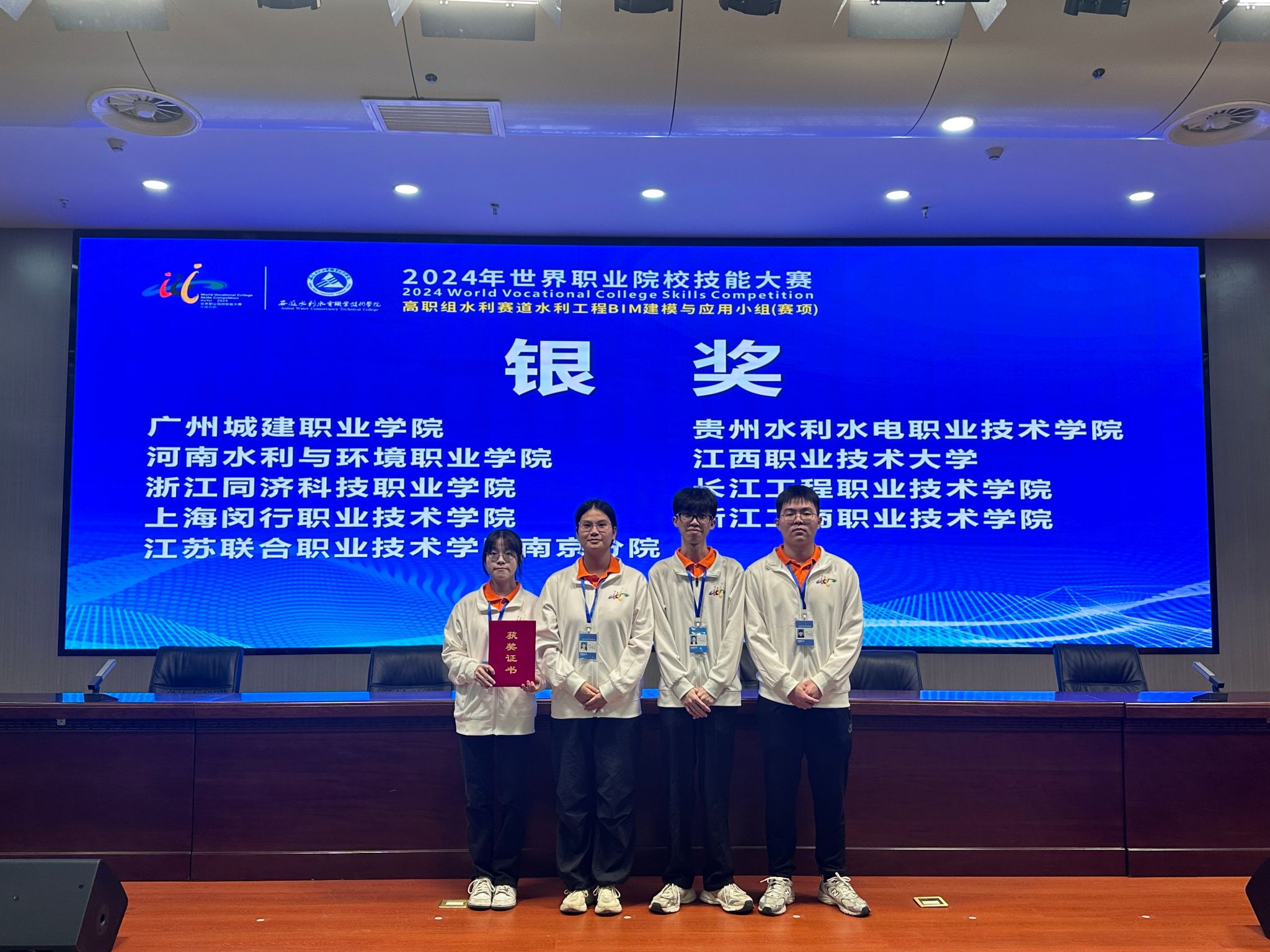 此外,2024年世界職業(yè)院校技能大賽總決賽爭奪賽水利賽道——水利工程BIM建模與應(yīng)用賽項在安徽水利水電職業(yè)技術(shù)學(xué)院落下帷幕,由我校建筑工程學(xué)院桂慧龍、李泳艷老師指導(dǎo),李梓萍、黃文亮、余燦旭、唐嬰4位同學(xué)組成的參賽隊在該賽項中獲得銀獎。