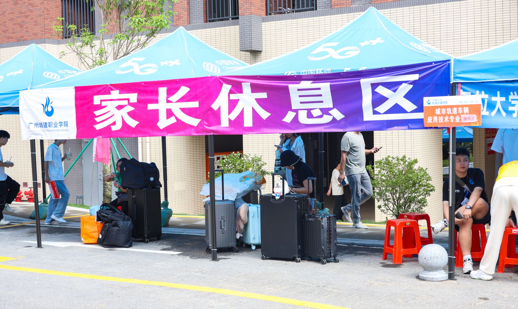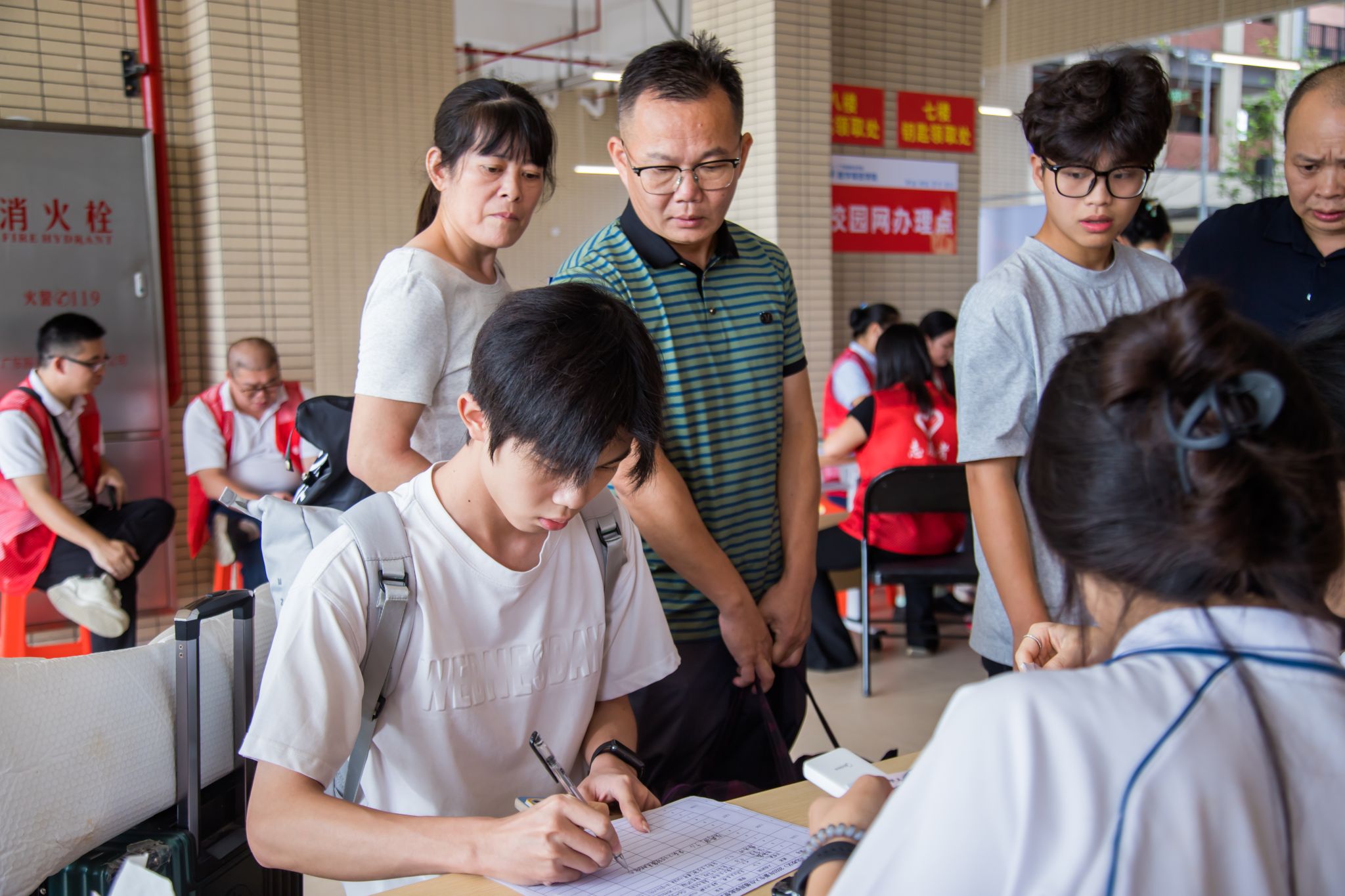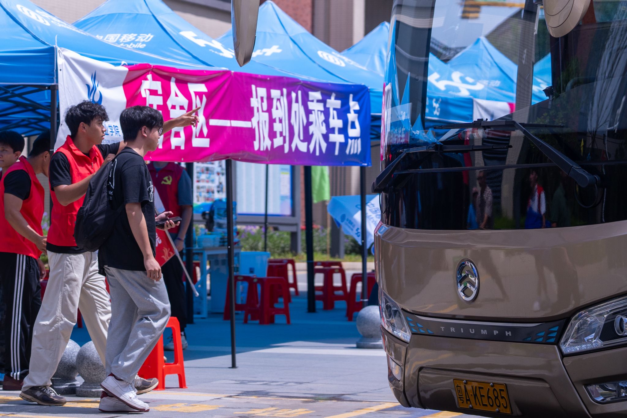 家長休息區(qū)、“一站式”學(xué)生社區(qū)、高鐵站等各點位工作人員與志愿者早早到崗,各司其職。