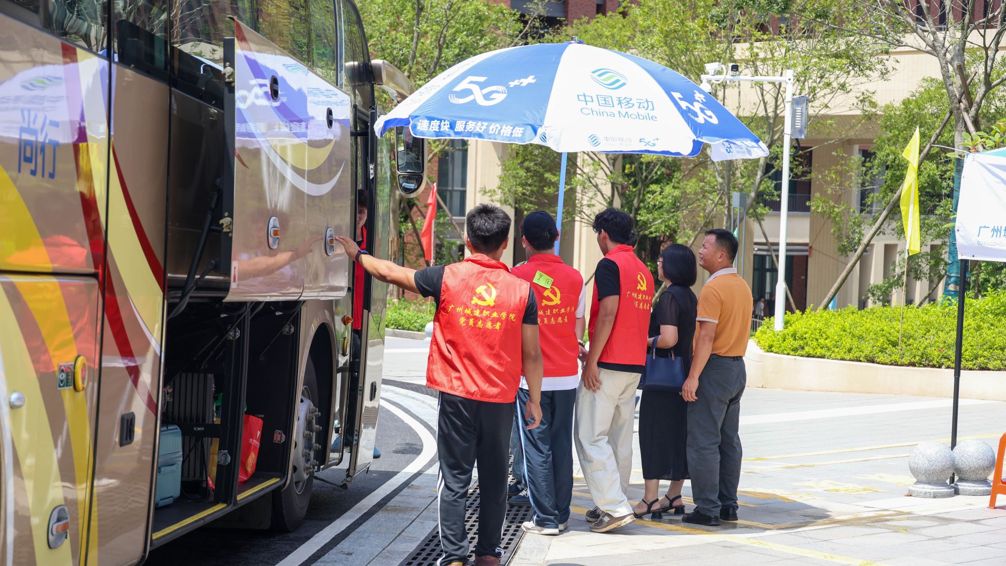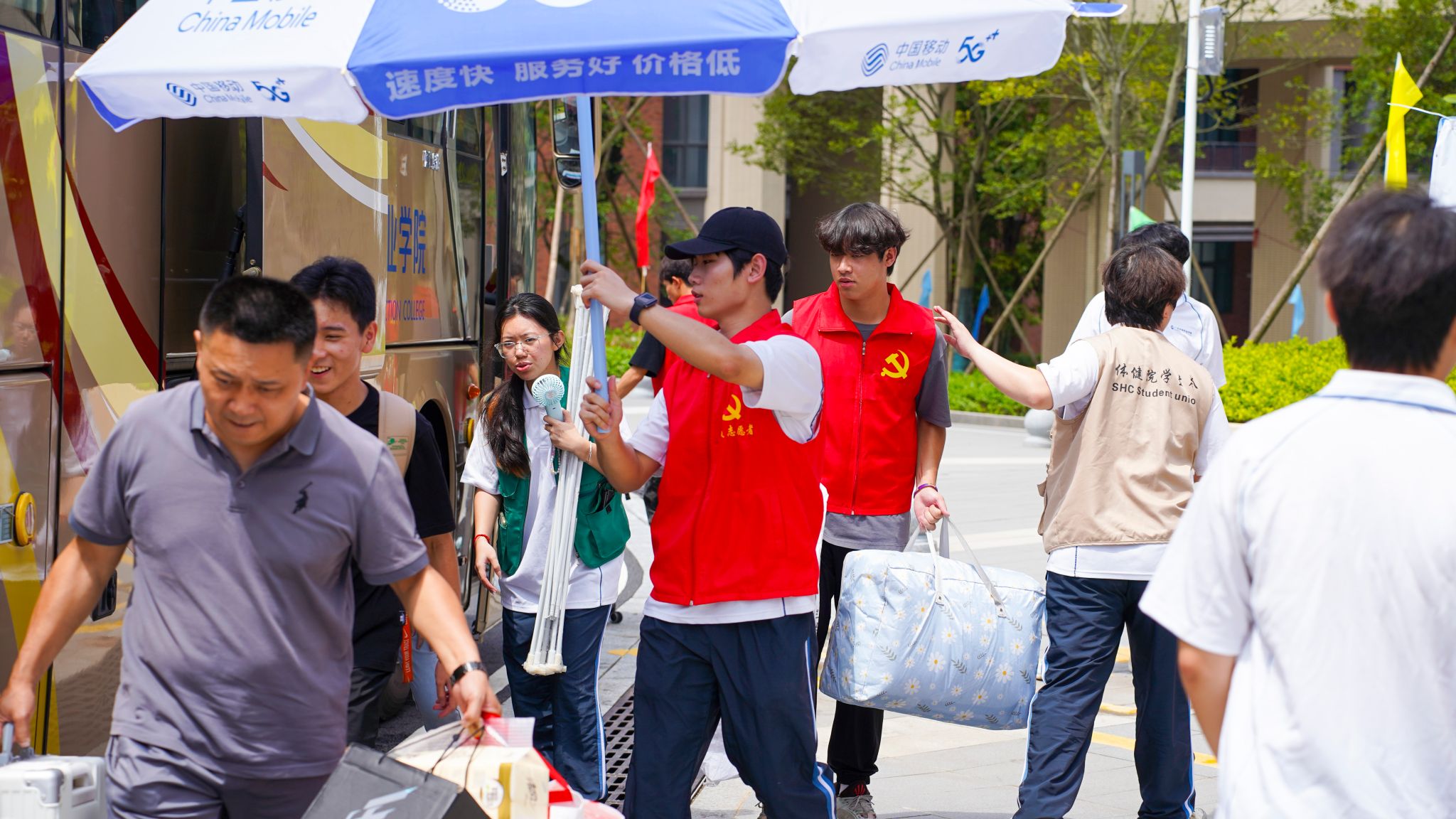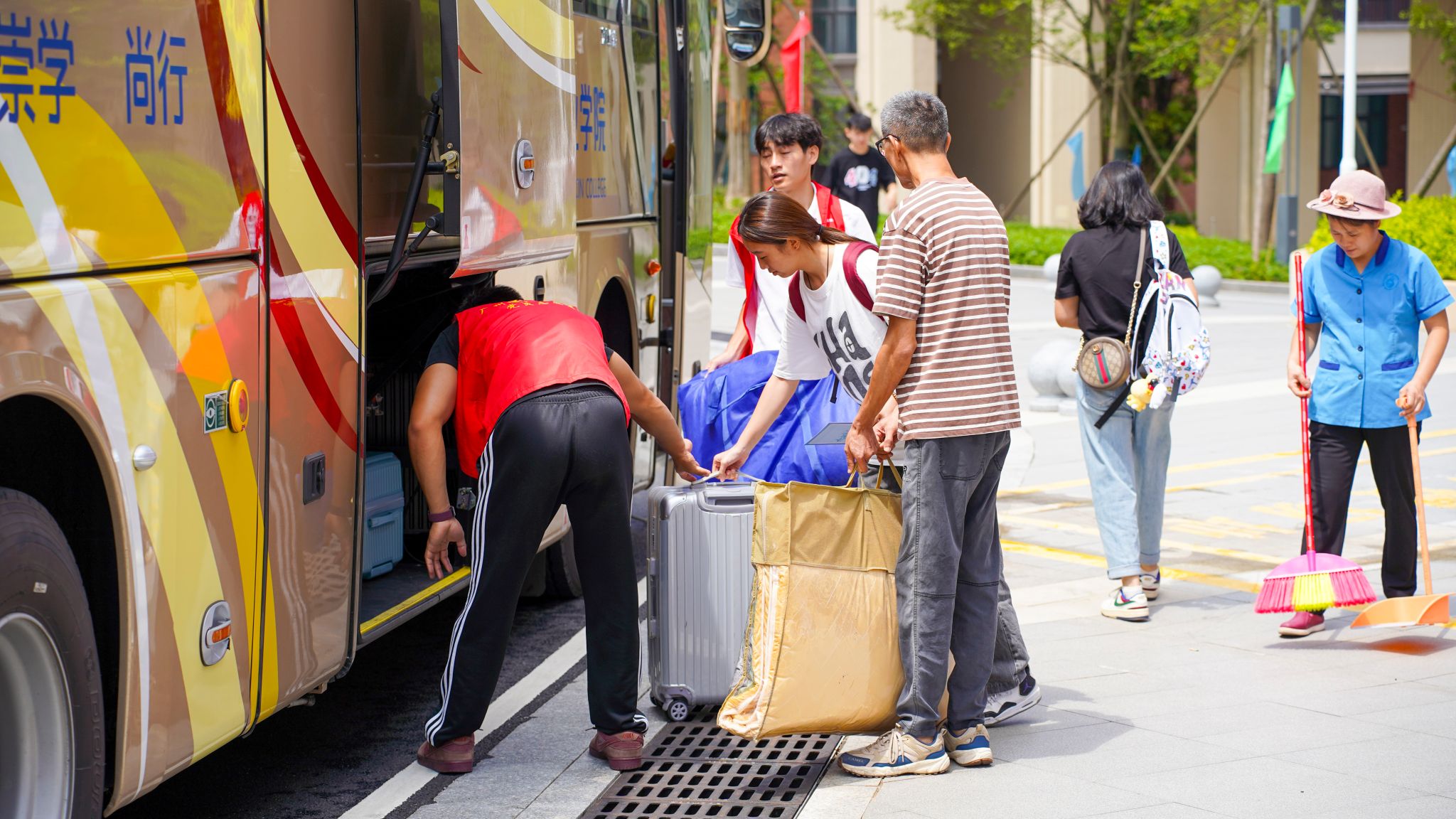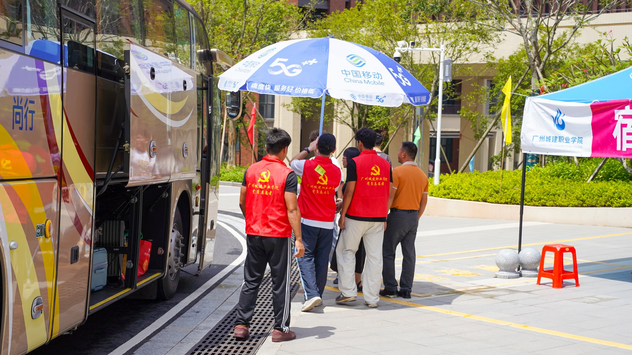 家長休息區(qū)、“一站式”學(xué)生社區(qū)、高鐵站等各點位工作人員與志愿者早早到崗,各司其職。