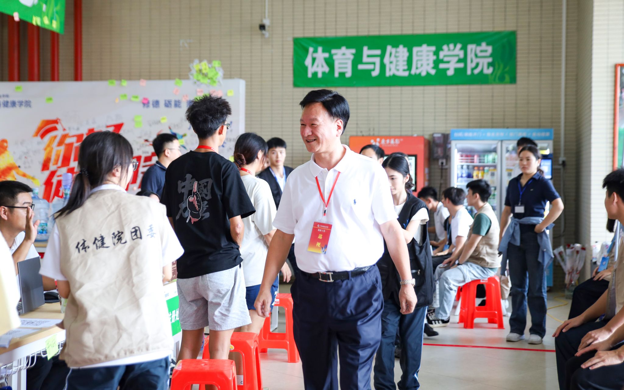 隨著清遠(yuǎn)校區(qū)迎新工作進(jìn)入尾聲,學(xué)校董事會執(zhí)行董事、校務(wù)管理委員會主任張亞斌,黨委書記黃學(xué)茭,校長李國年等校領(lǐng)導(dǎo)來到迎新點,慰問參與迎新工作的老師和同學(xué)們,對辛勤忙碌的工作人員表示衷心感謝。