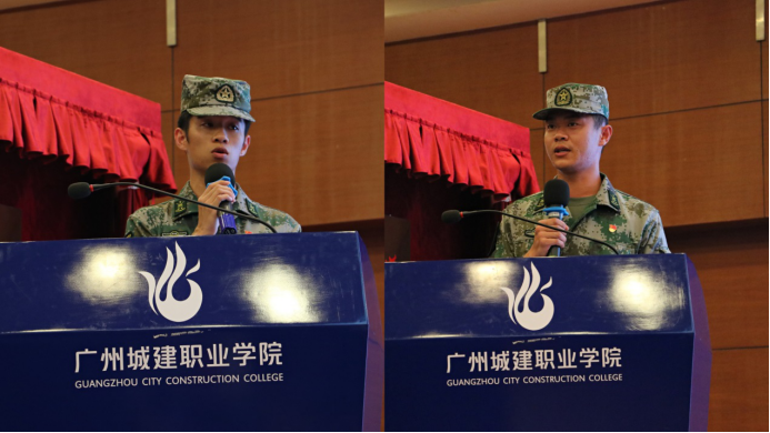 一區(qū)區(qū)隊(duì)長陳俊均、二區(qū)區(qū)隊(duì)長葉家宇作為隊(duì)員代表上臺(tái)發(fā)言,代表全體隊(duì)員承諾:在日后的訓(xùn)練中,隊(duì)員們將會(huì)服從命令,肯于吃苦,團(tuán)結(jié)友愛,文明禮貌,時(shí)刻以軍人的標(biāo)準(zhǔn)嚴(yán)格要求自己。