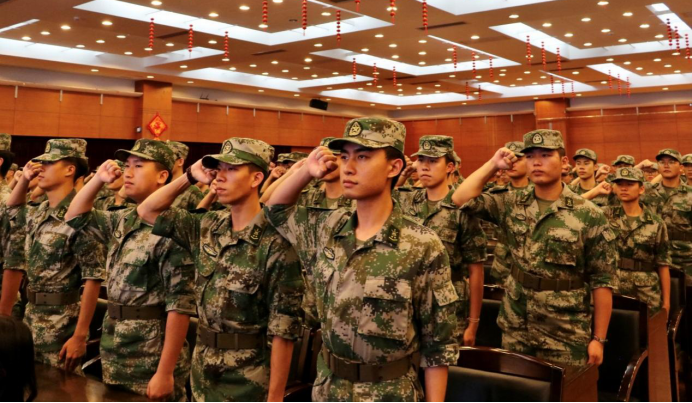 授銜完畢,全體隊(duì)員緊握右拳莊嚴(yán)宣誓,承諾將會(huì)服從命令,聽從指揮,嚴(yán)守紀(jì)律,刻苦訓(xùn)練,勤奮學(xué)習(xí),樂于奉獻(xiàn),為國防教育事業(yè)做出應(yīng)有的貢獻(xiàn)。