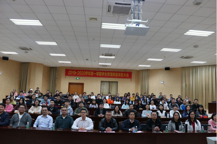 1月6日下午,2019-2020學年第一學期學生管理質(zhì)量表彰大會在建工機電樓101報告廳召開。副校長張德宜及學生處、就業(yè)創(chuàng)業(yè)指導中心、各二級學院學工領導以及全體輔導員參加了會議。