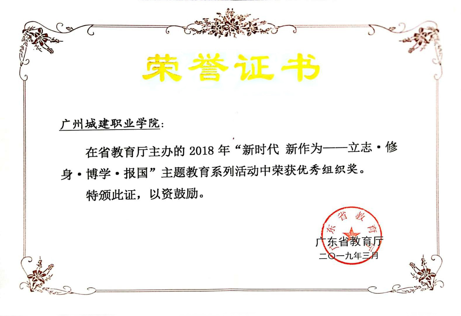 大會對2018年“新時代 新作為——立志、修身、博學(xué)、報國”主題教育系列活動優(yōu)秀組織獎獲獎單位進(jìn)行頒獎。在該活動中,我校學(xué)生共獲各類獎項15項,其中二等獎3項、三等獎6項、優(yōu)秀獎5項,學(xué)校榮獲優(yōu)秀組織獎,連續(xù)三年獲此殊榮,在同類院校中獲得獎項最多,并且是全省30所獲優(yōu)秀組織獎高校中唯一一所民辦高職院校。