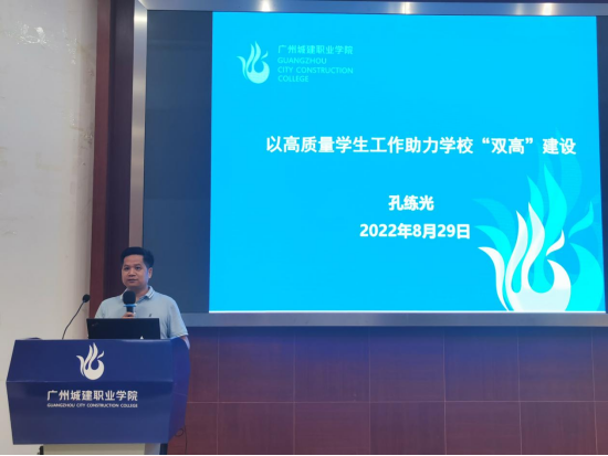 孔練光作題為《以高質(zhì)量學(xué)生工作助力學(xué)校“雙高”建設(shè)》的報(bào)告,在上半年,學(xué)生工作成績(jī)喜人,亮點(diǎn)紛呈,多項(xiàng)成果取得突破,如第十三屆“挑戰(zhàn)杯”廣東大學(xué)生創(chuàng)業(yè)計(jì)劃競(jìng)賽獲3金5銀7銅,金牌獲獎(jiǎng)數(shù)位居全省高職院校第二;2022年全國(guó)大中專學(xué)生志愿者暑期文化科技衛(wèi)生“三下鄉(xiāng)”社會(huì)實(shí)踐活動(dòng)全國(guó)重點(diǎn)團(tuán)隊(duì)2支、全省重點(diǎn)團(tuán)隊(duì)12支,立項(xiàng)位居全省同類院校第一;入選教育部“一站式”學(xué)生社區(qū)綜合管理模式建設(shè)自主試點(diǎn)單位等;此外,在廣東省輔導(dǎo)員素質(zhì)能力大賽、廣東省普通高等學(xué)校軍事理論課教學(xué)比賽、廣東高校思想政治工作優(yōu)秀論文征集評(píng)選等活動(dòng)中也取得優(yōu)異成績(jī)。針對(duì)新學(xué)期各項(xiàng)工作,他指出全體學(xué)工隊(duì)伍要以“雙高校”建設(shè)為契機(jī),履職盡責(zé),主動(dòng)作為,全面提升學(xué)生工作質(zhì)量,為“雙高?!苯ㄔO(shè)貢獻(xiàn)智慧和力量,并提出幾點(diǎn)要求:一是要守紀(jì)律。輔導(dǎo)員老師要堅(jiān)定政治信仰,守住師德師風(fēng)、規(guī)章制度和紀(jì)律法律的底線,努力建設(shè)良好育人環(huán)境;二是要強(qiáng)學(xué)習(xí)。加強(qiáng)政治理論學(xué)習(xí),提升業(yè)務(wù)知識(shí)儲(chǔ)備,掌握好學(xué)生成長(zhǎng)規(guī)律,以科學(xué)理論指導(dǎo)工作。三是要重實(shí)效。堅(jiān)持問(wèn)題導(dǎo)向,在推進(jìn)工作中抓重點(diǎn),確保工作有成果。四是要保穩(wěn)定。高度重視安全穩(wěn)定工作,切實(shí)為學(xué)生健康成長(zhǎng)提供堅(jiān)強(qiáng)保障。